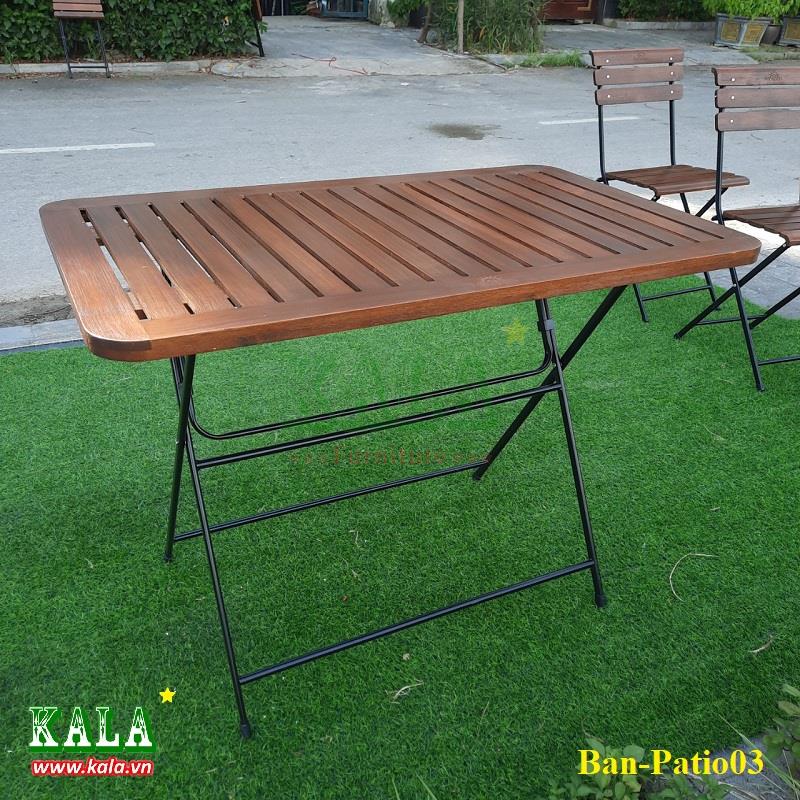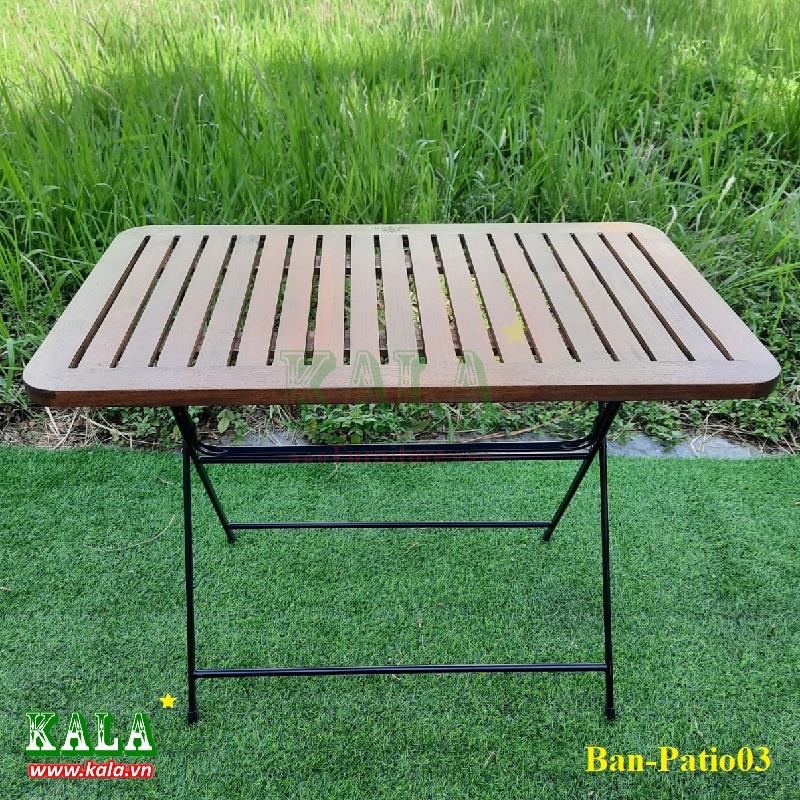 Kala.vn giới thiệu tới mọi người một mẫu bàn Fansipan Patio03 mặt nan có kích thước 600x1000mm thường được sử dụng làm bàn cafe, bàn ngoài trời, bàn sân vườn. Bàn được thiết kế chân sắt mặt gỗ như các mẫu bàn thông dụng hiện nay.