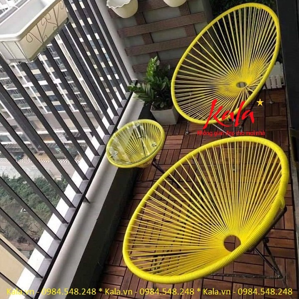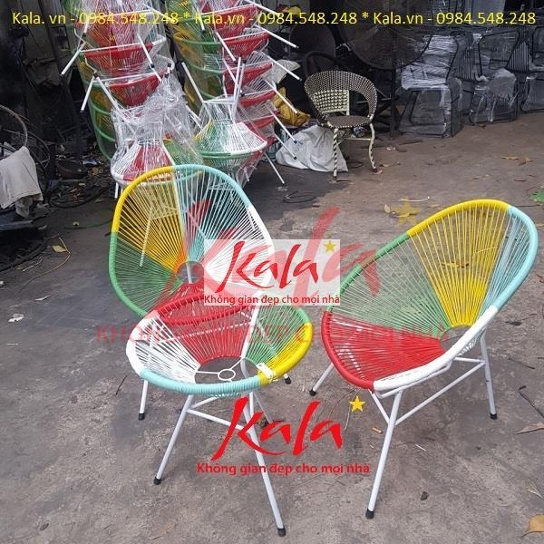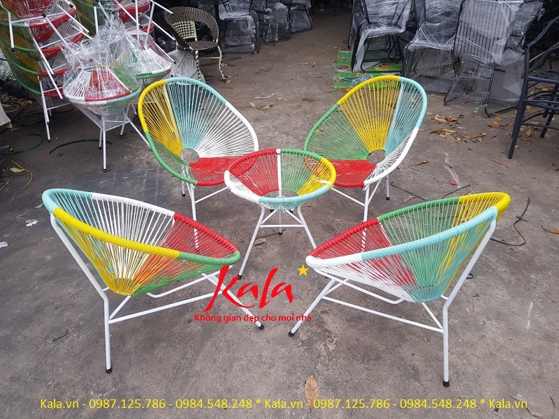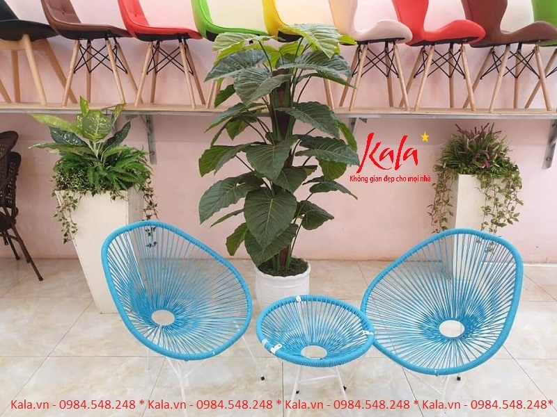 Bàn ghế Acapulo được làm bằng khung sắt sơn tĩnh điện được kết hợp với những sợi mây nhựa nguyên sinh 100%/. Htts://Kala.vn/ban-ghe-eames
