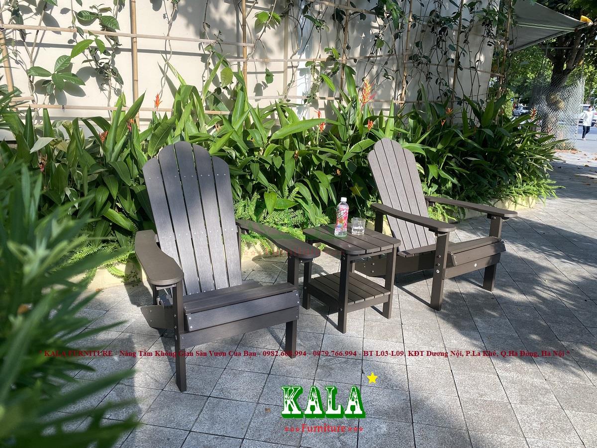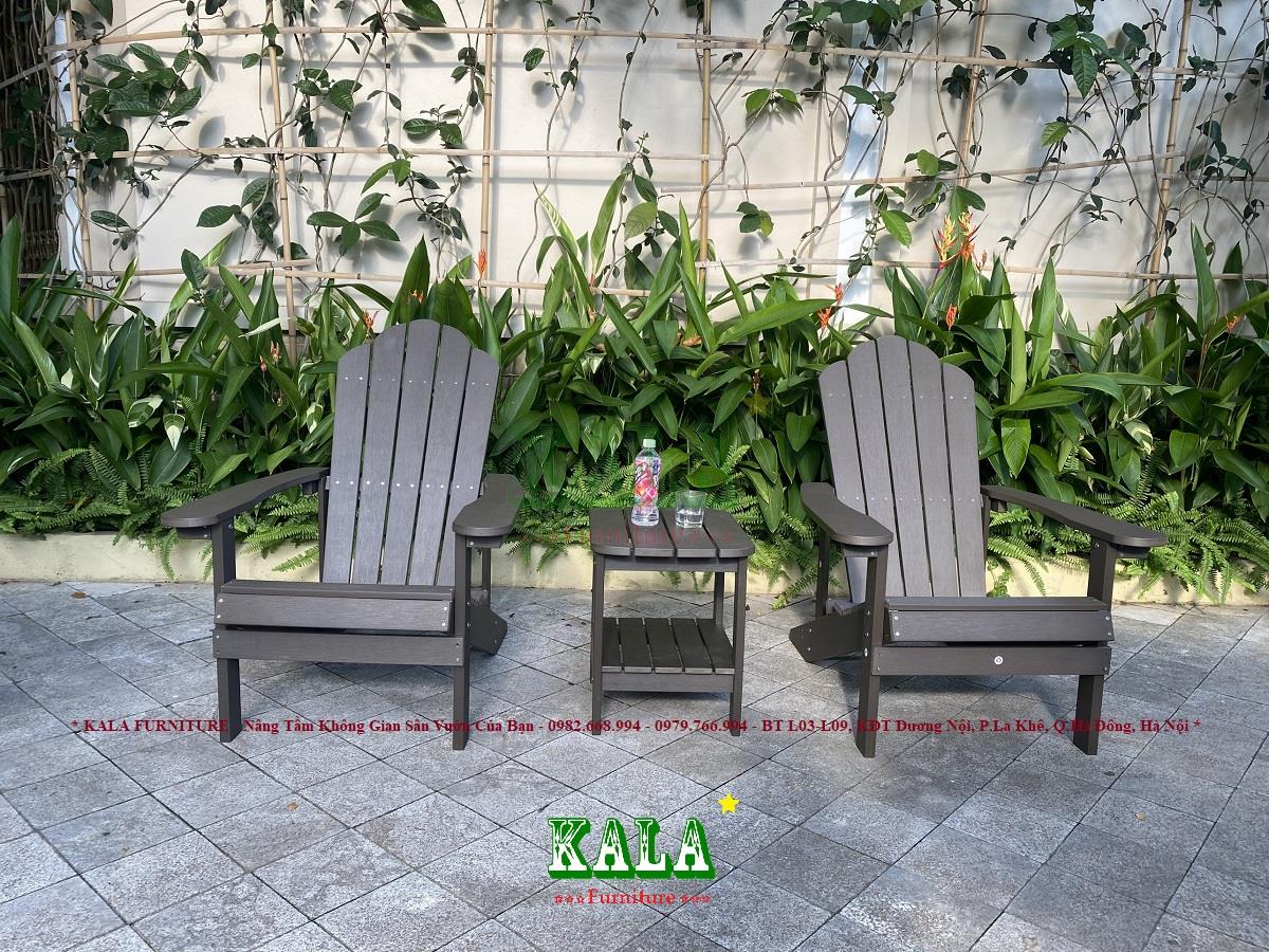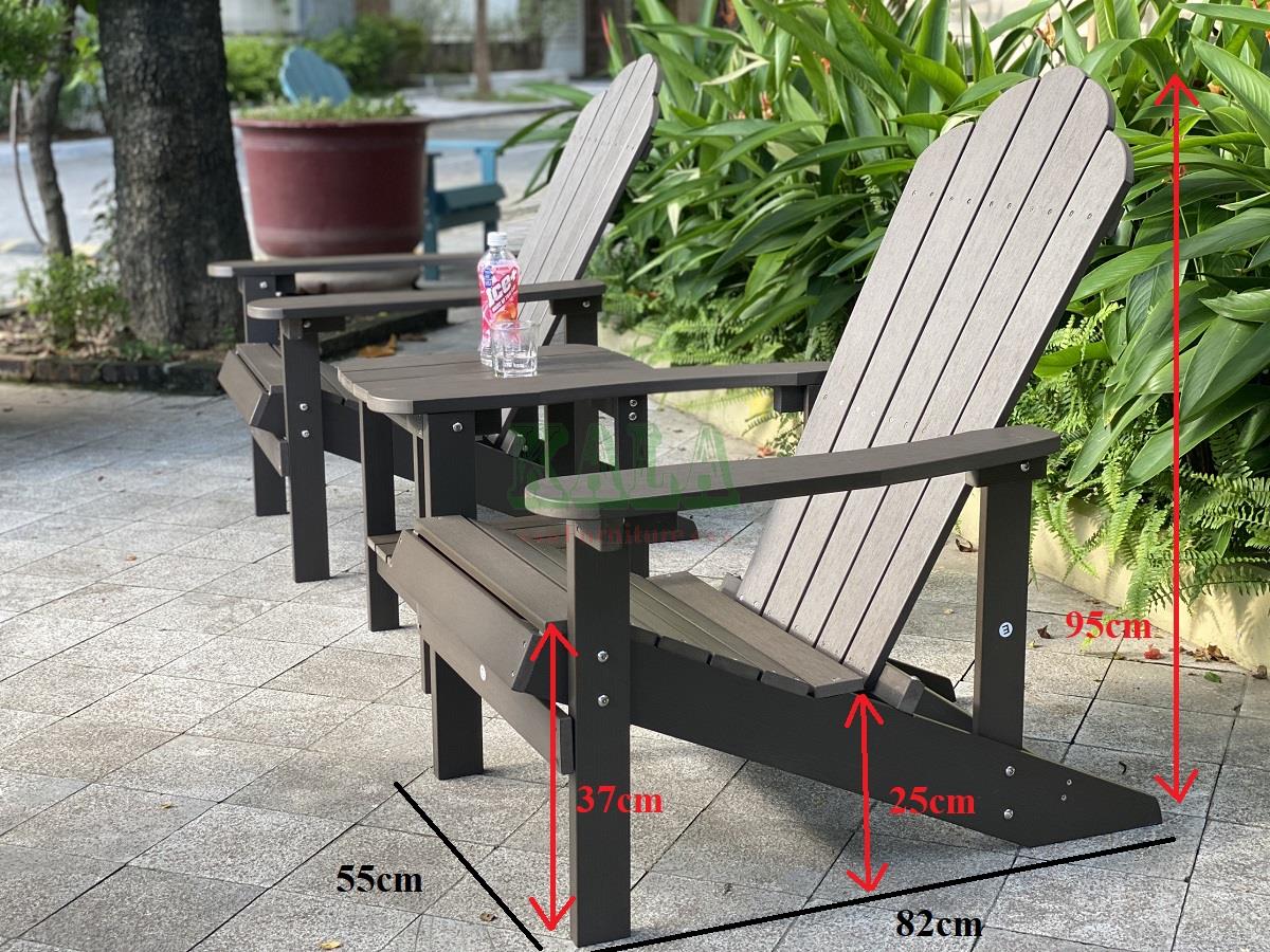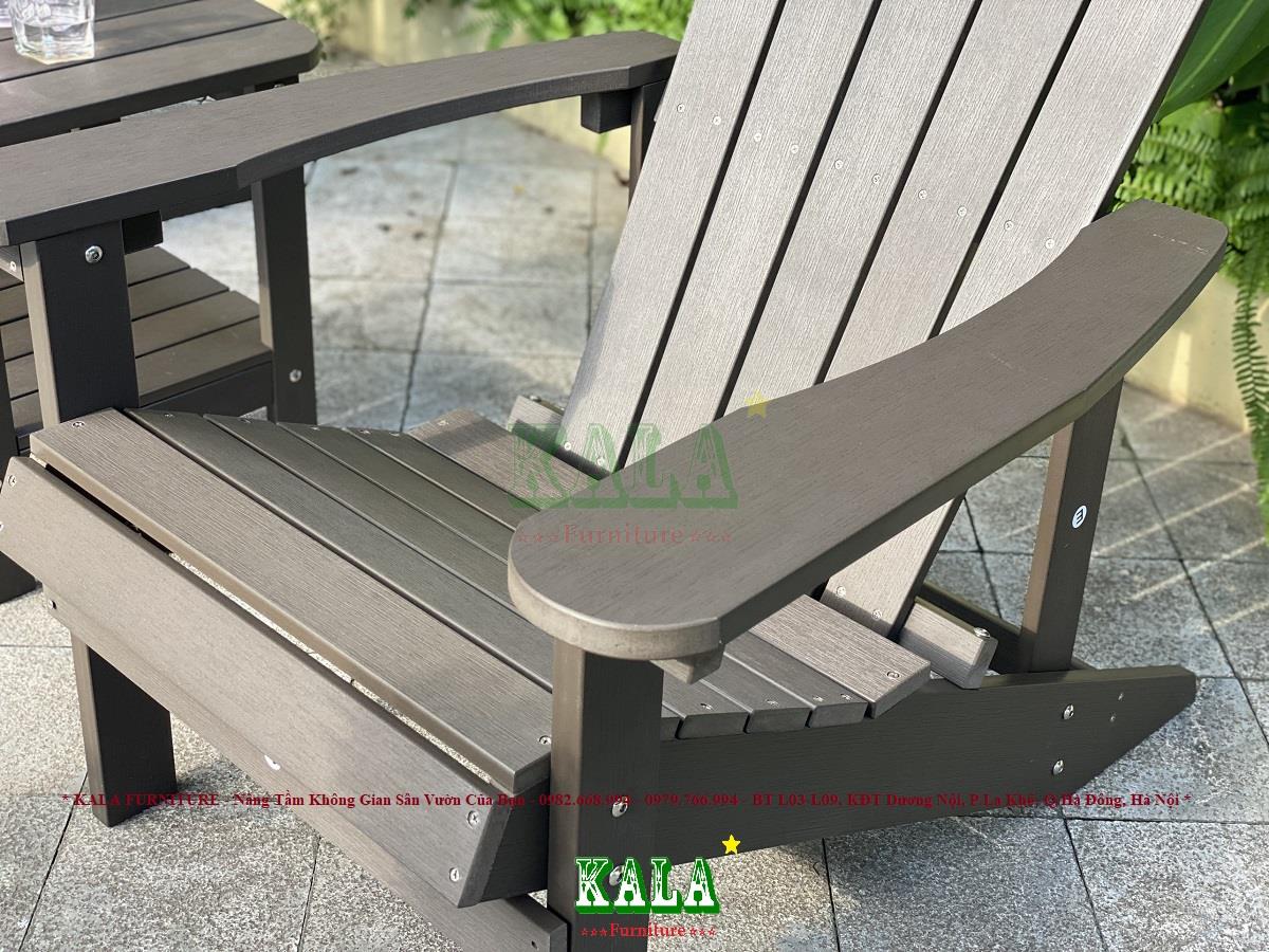 Bàn ghế Adriodack đang dần là xu hướng hiện nay cho không gian sân vườn của các gia đình, các khu biệt thự, khu nghỉ dưỡng, resort,... Ghế có thiết kế rộng rãi, tạo cảm giác ngồi thoải mái. Toàn bộ bàn ghế được làm bằng chất liệu nhựa giả gỗ siêu bền còn sang trọng
