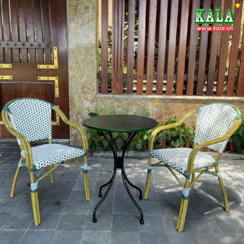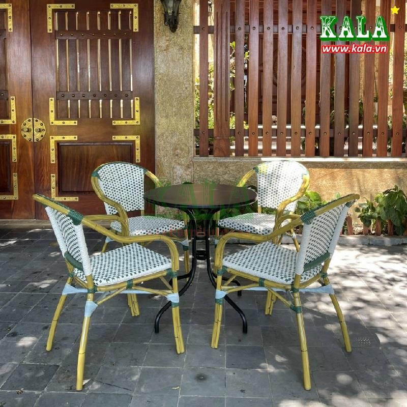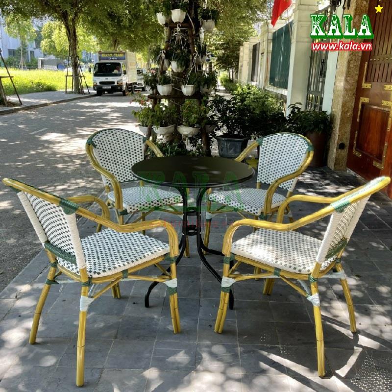 Mẫu bàn ghế cafe ngoài trời đang được mọi người lựa chọn nhiều nhất hiện nay là mẫu bàn nhôm đúc kết hợp với ghế mây nhựa đan. Mẫu bàn ghế này không chỉ đẹp mà còn rất bền, thân thiện với môi trường. Liên hệ đến Kala.vn ngay để người tư vấn, hỗ trợ
