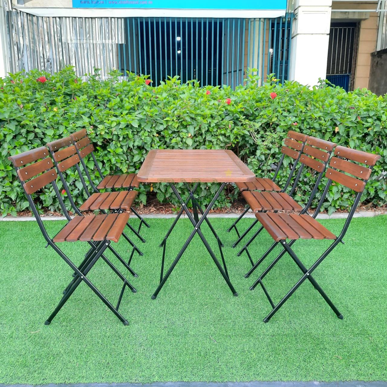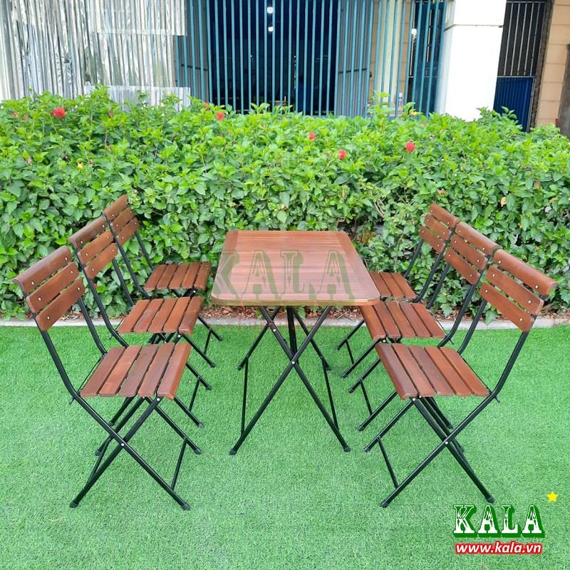 - Bộ gồm 1 bàn chữ nhật, 6 ghế Patio lưng thẳng