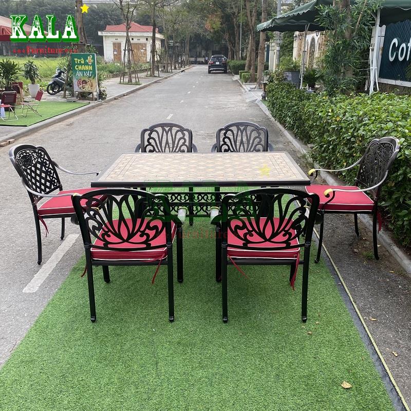 Bàn ghế nhôm đúc nhập khẩu NK20 có kiểu dáng vuông vắn từ bàn đến ghế tạo cho không gian sự tinh tế, sang trọng. Thiết kế bàn ghế đơn giản cùng màu đồng đen càng làm tăng vẻ đẹp cổ điển.
