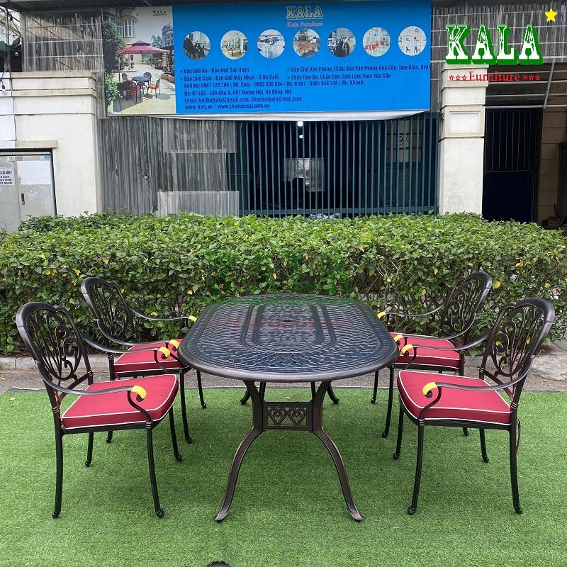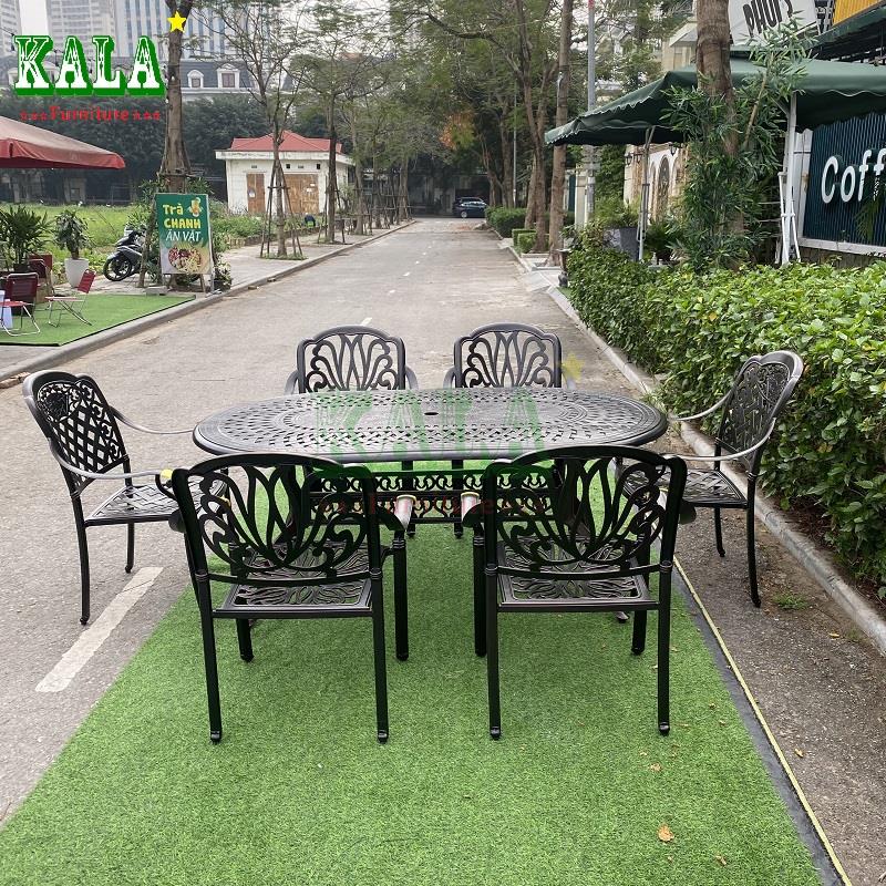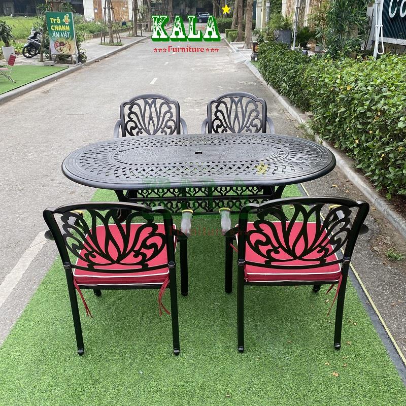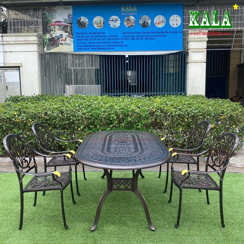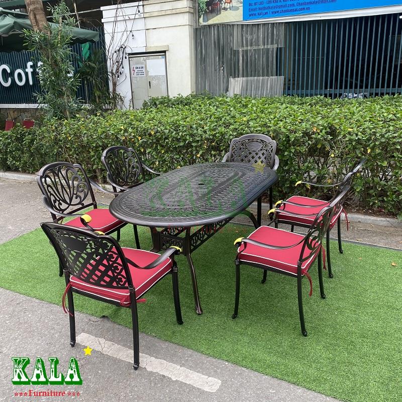 Với không gian sân vườn rộng thì mẫu bàn nhôm đúc bầu dục là sự lựa chọn hợp lý cho không gian. Bàn bầu dục vừa có sức chứa nhiều người, vừa có độ vòng tròn để mọi quay mặt, quây quần lại với nhau, tạo sự liên kết.