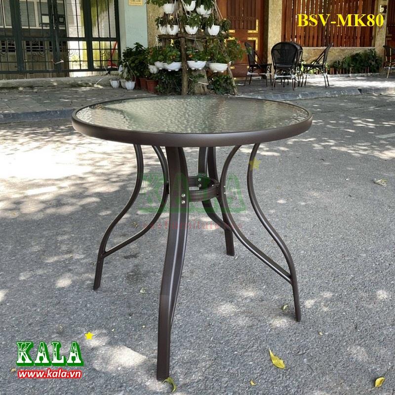 Bàn sân vườn MKT80 là mẫu bàn nhập khẩu nguyên chiếc nên chất lượng và mẫu mã bàn không phải bàn đến. Khung bàn được làm bằng hợp kim cacbon thép sơn tĩnh điện đen, mặt bàn kính tròn 80cm. Bàn MKT80 thường được lựa chọn làm bàn ghế dùng cho sân vườn tại gia đình hay tại các quán cafe có không gian ngoài trời.