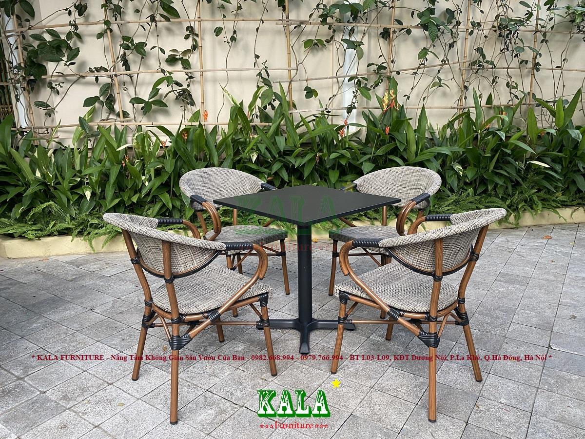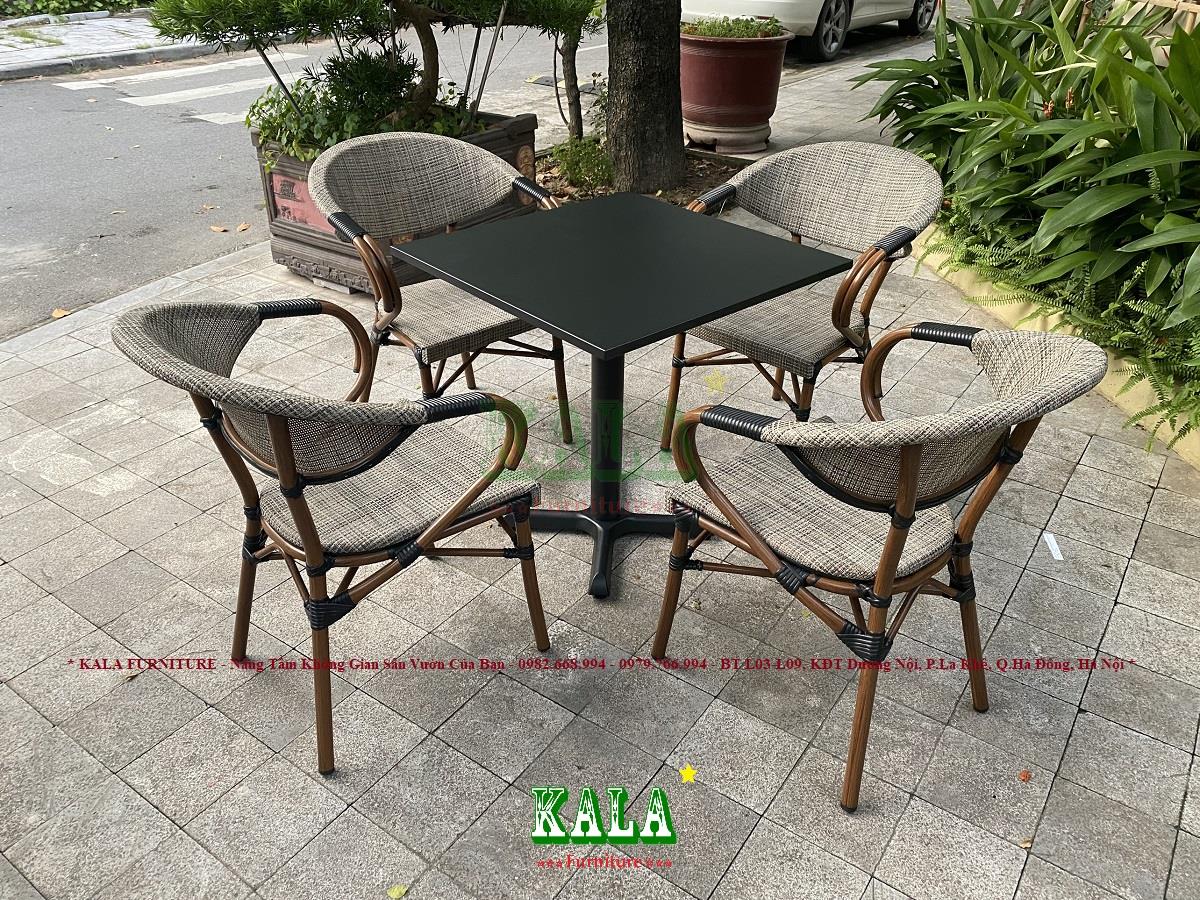 Một mẫu bàn ghế cafe đang làm mưa làm gió, là xu hướng được rất nhiều người tìm kiếm cho không gian ban công, góc vườn nhỏ sau nhà hay quán cafe,.... Đó chính là bộ bàn ghế BGC-VD70TEX01G. Bộ bàn ghế đã được có số lượng lớn tại kho Nội Thất KALA.