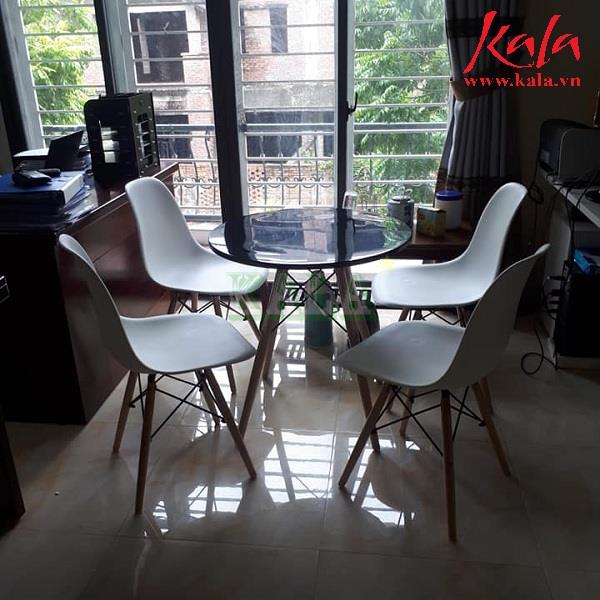 Bộ bàn ghế Eames bào gồm 1 bàn 4 ghế thường dùng cho văn phòng, showrom, phòng tiếp khách hay những quán cafe, trà sựa, quán ăn nhanh mang phong cách hiện đại và rất sang trọng làm cho không gian của bạn trở nên cuốn hút hơn.