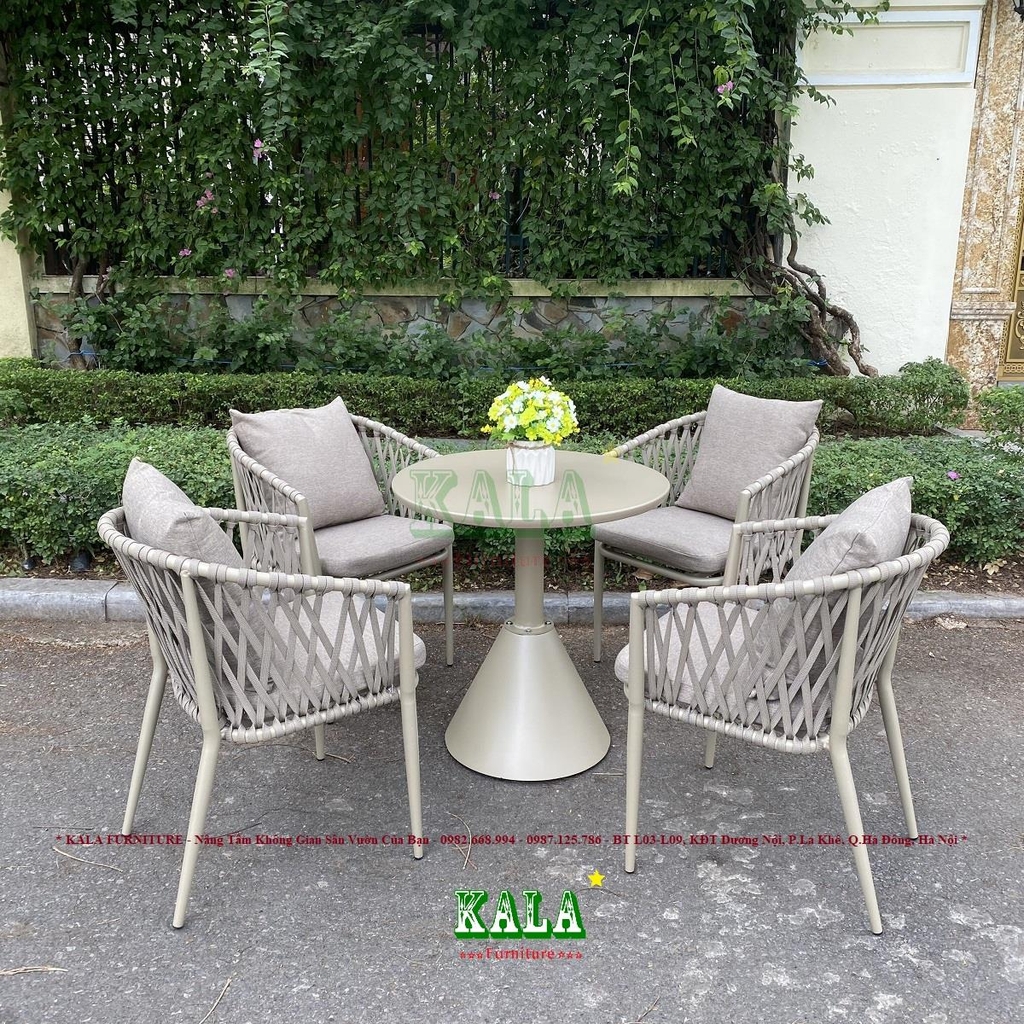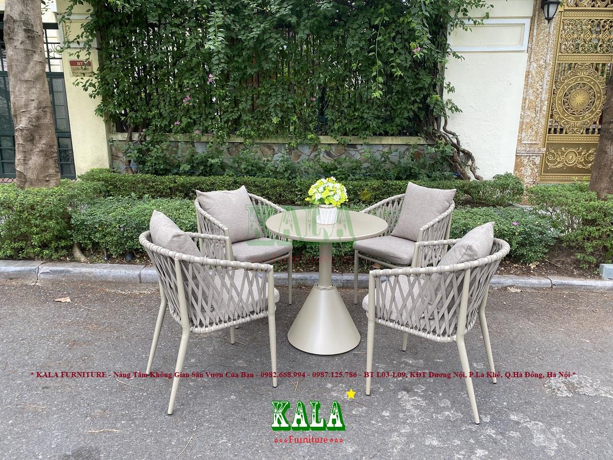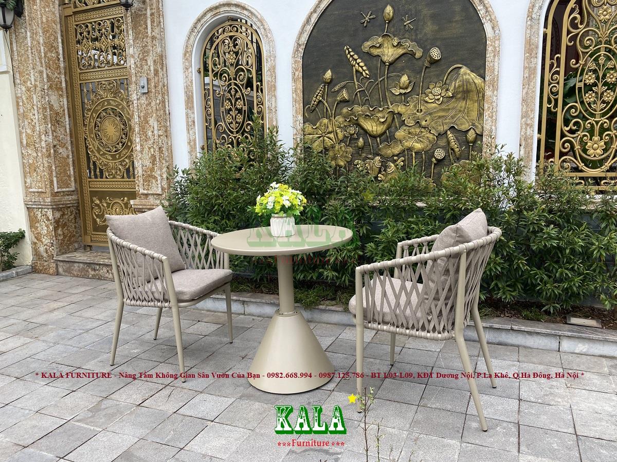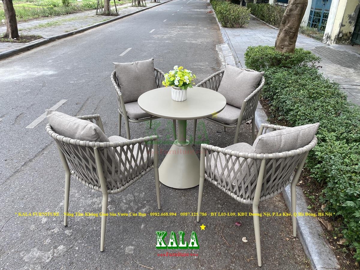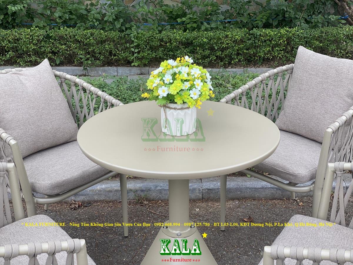 Bộ bàn ghế có khung được làm toàn bộ bằng nhôm nên bàn ghế rất cứng cáp, chắc chắn. Bên ngoài khung đã được phủ sơn tĩnh điện nhám tỉ mỉ, bắt mắt, làm cho bàn ghế vừa đẹp vừa bền, khi dùng ngoài trời không lo bị gỉ sét, gãy hỏng. Với chất liệu bằng nhôm bạn sẽ không phải lo về vấn đề di chuyển, vận chuyển chúng bởi trọng lượng của chúng nhẹ hơn nhiều so với các mẫu bàn ghế trước đây.
