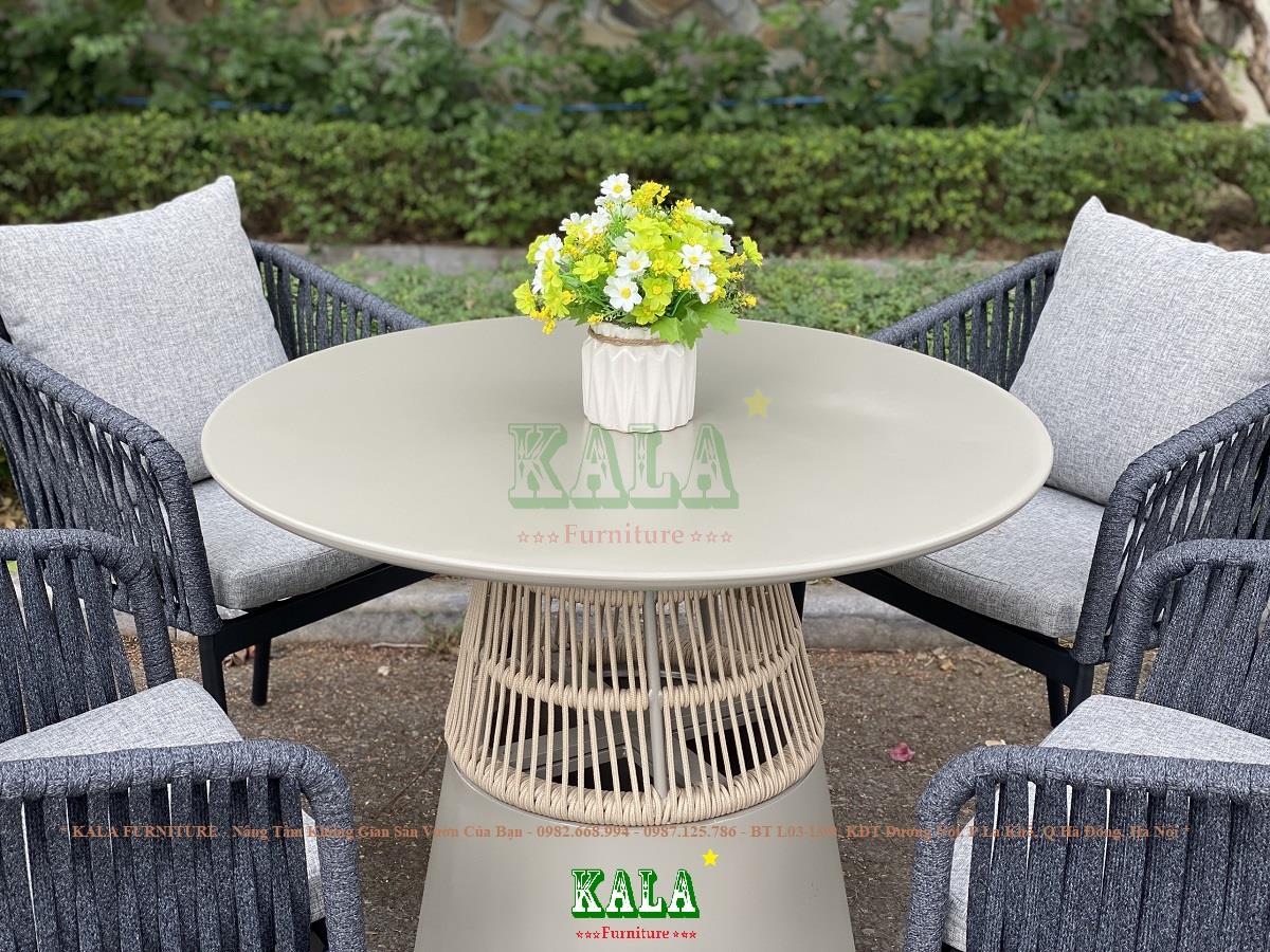 - Bàn ghế có khung được làm bằng nhôm, bền ngoài phủ sơn tĩnh điện nên bàn ghế rất chắc chắn, cứng cáp, có độ bền cao, thích hợp dùng làm bàn ghế ngoài trời. Được làm bằng chất liệu nhôm nên bàn ghế có trọng lượng rất nhẹ, rất thuận tiện cho người dùng. Bàn ghế được đan thêm phần dây dù xung quanh làm điểm nhấn nổi bật cho bộ bàn ghế thêm. Các sợi dù đã đã được đan thành bản, có độ dai, độ bền cao, dùng ngoài trời không lo bị mục, đứt dây.