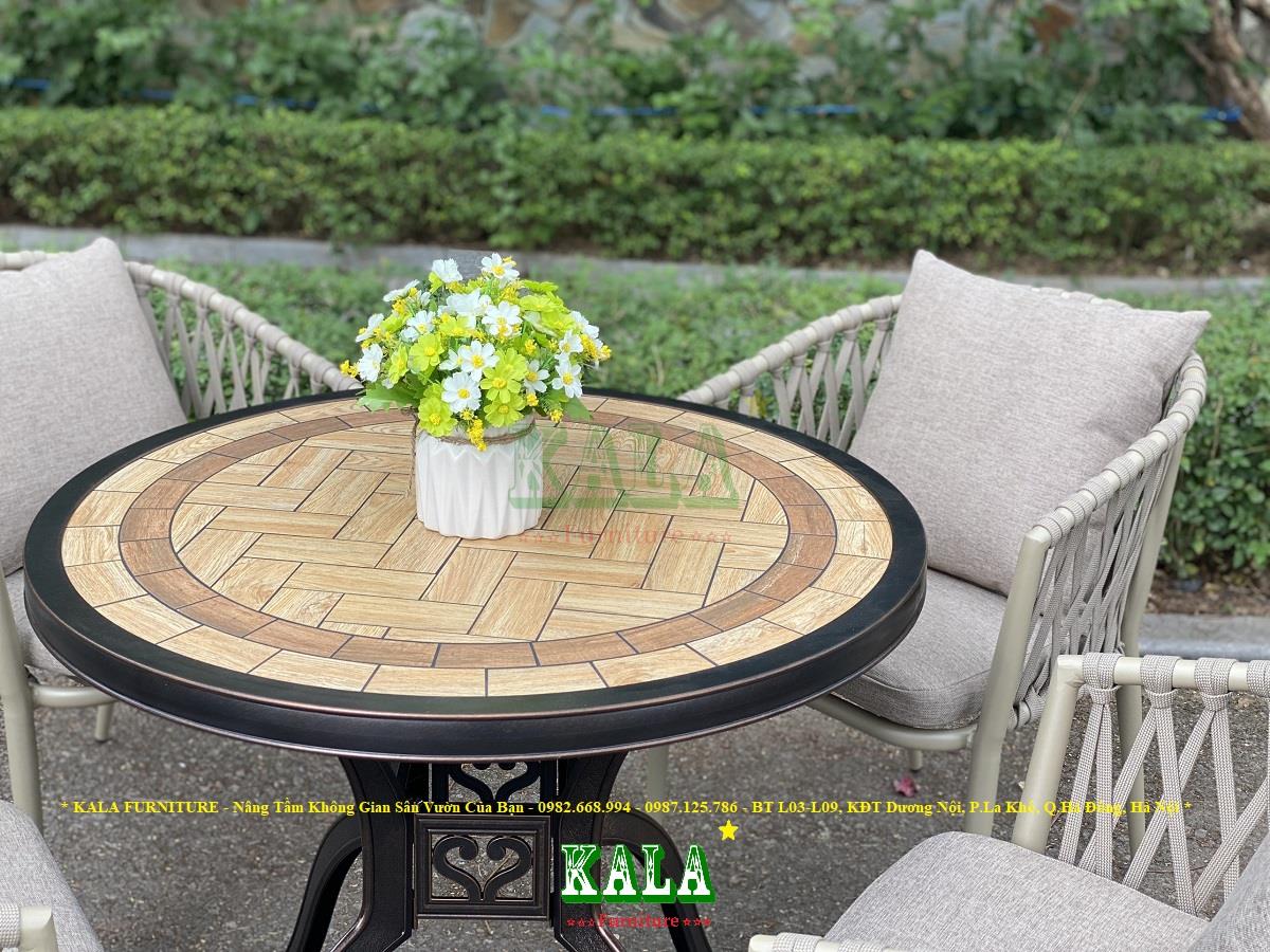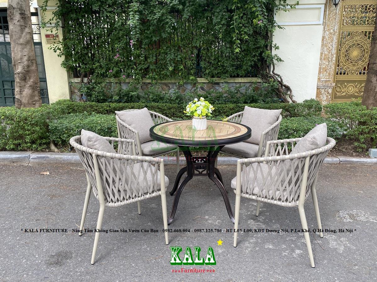 KALA FURNITURE giới thiệu đến mọi người một mẫu bàn ghế độc đáo, mới lạ cho không gian sân vườn ngoài trời. Đó là bộ bàn ghế khung nhôm dây dù BG-DD07. Đây là sự kết hợp bàn nhôm đúc mặt đá với ghế dây dù kiểu mới sẽ làm cho không gian của bạn nổi bật hơn.