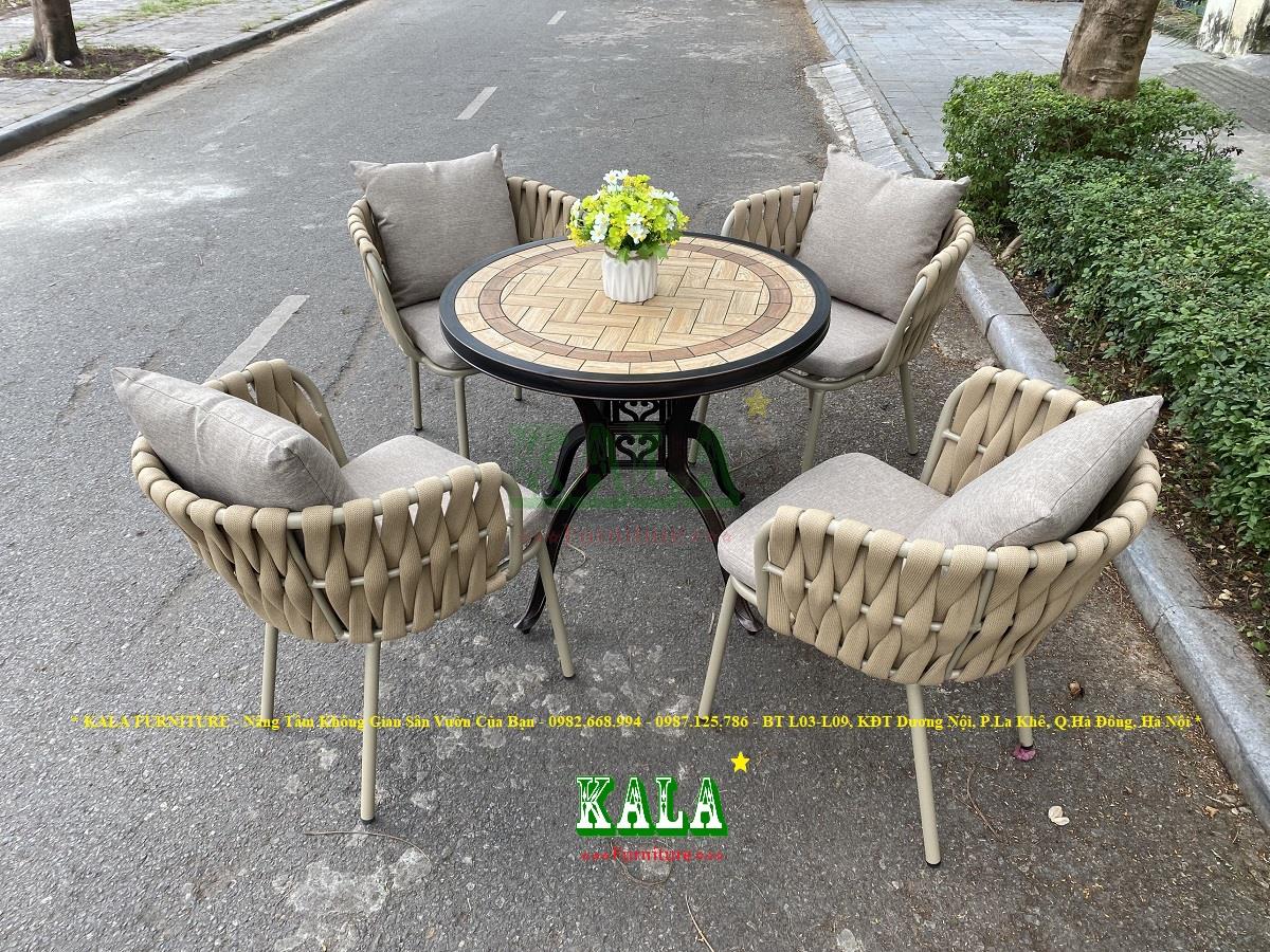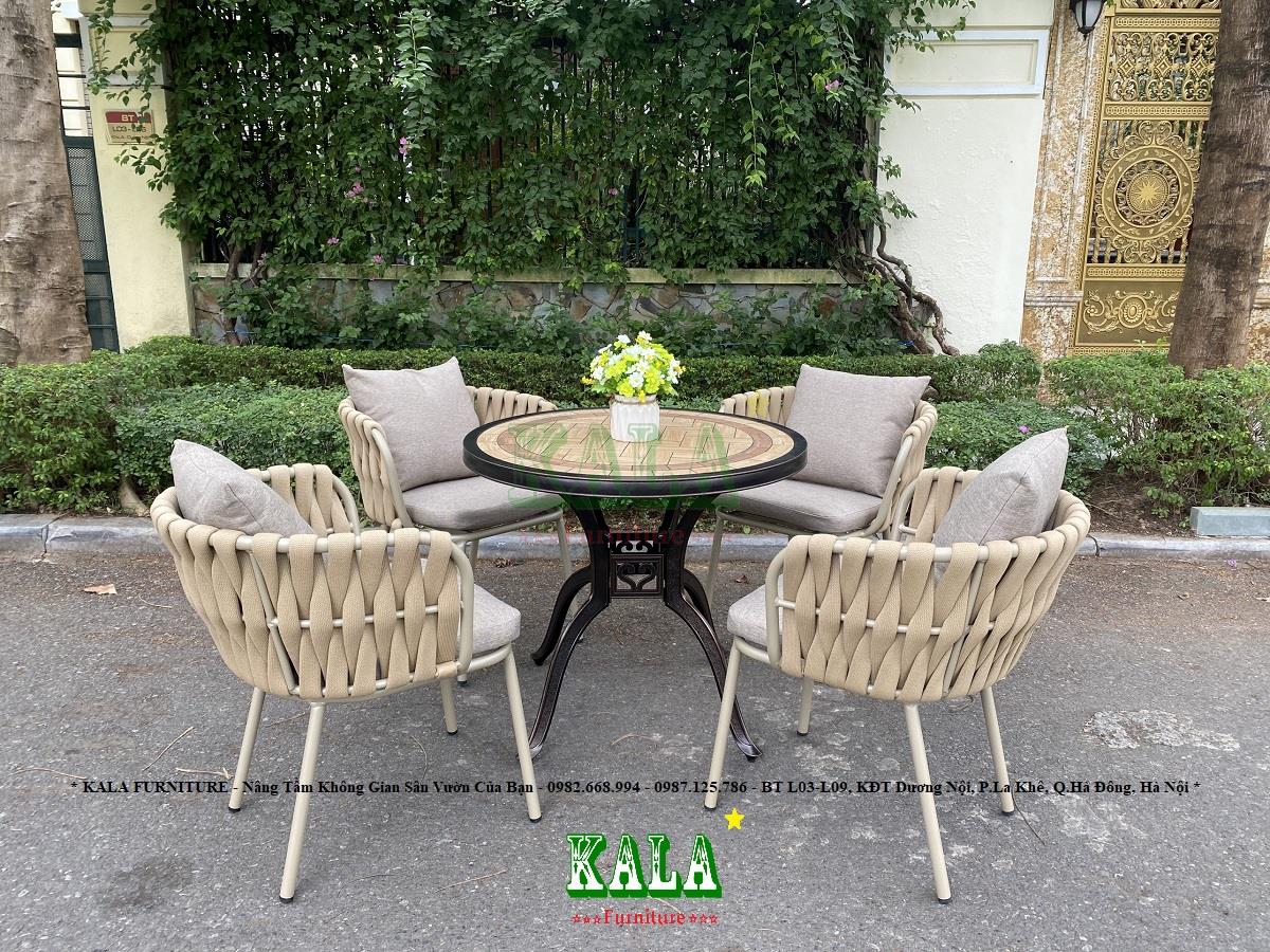 Bàn ghế sân vườn bằng nhôm không còn quá xa lạ với mọi người nữa bởi vẻ đẹp cũng như tính tiện lợi mà chúng đem lại. Nhưng bạn đã biết đến mẫu bàn nhôm đúc kết hợp với ghế dây dù kiểu mới? Vậy KALA FURNITURE giới thiệu đến mọi người Bộ bàn ghế khung nhôm dây dù BG-DD08.