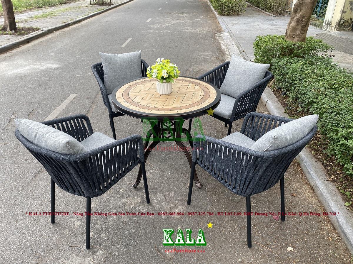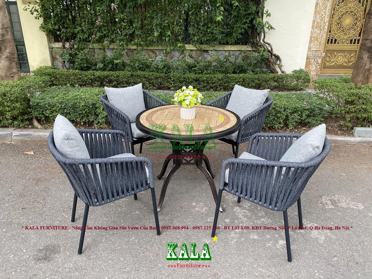 Bàn ghế không chỉ để đáp ứng ngồi uống nước, ăn uống, thư giãn,... mà còn dùng để deco, trang trí cho không gian trở nên đẹp mắt, sang trọng hơn. Chính vì vậy, bàn ghế không chỉ cần chất lượng mà mẫu mã ngày càng phải sáng tạo, bắt mắt người dùng. Bàn ghế dây dù là một trong số mẫu mới, cập nhật theo xu hướng mới nhất cho không gian ngoài trời, sân vườn của bạn. Tham khảo ngay bộ bàn ghế khung nhôm dây dù BG-DD09 siêu siêu đẹp này.