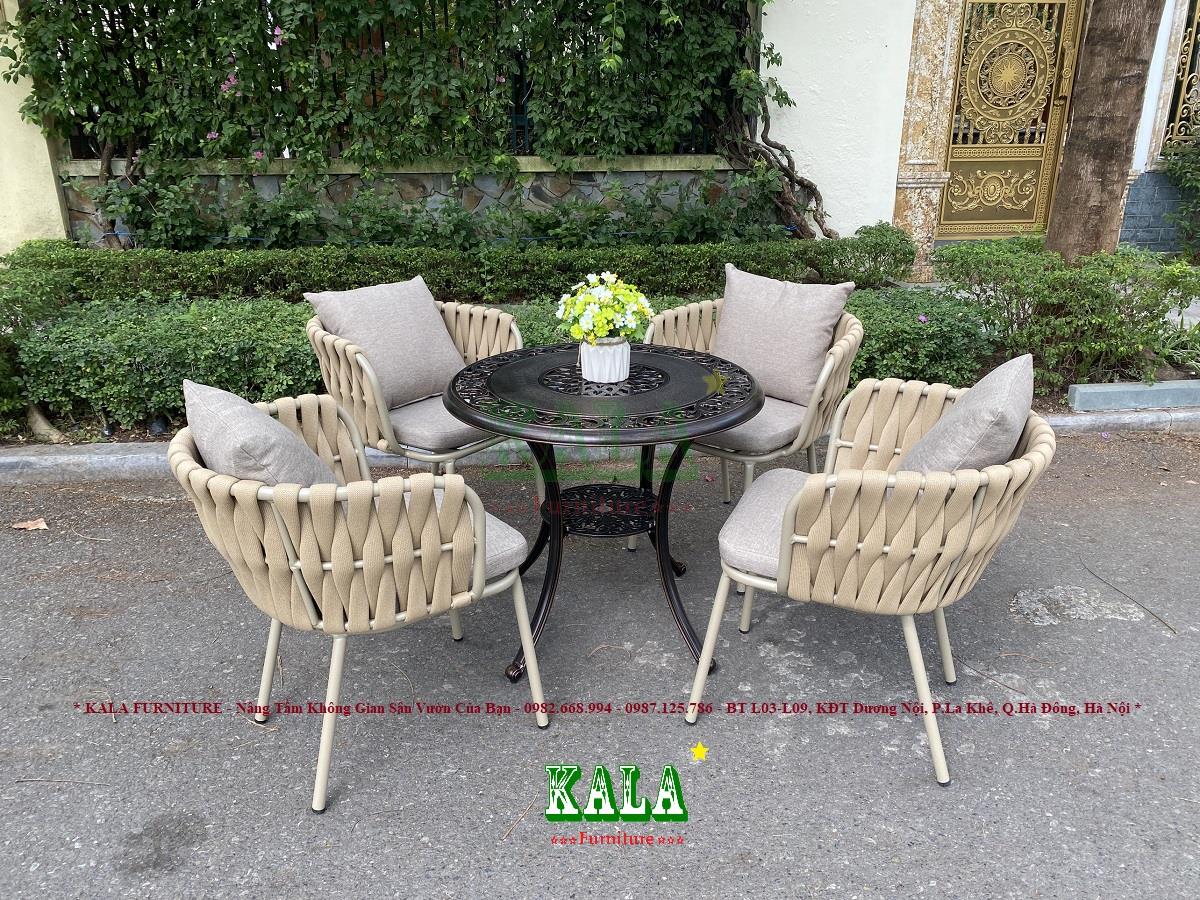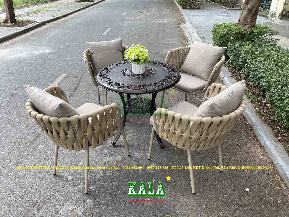 - Khung bàn ghế được làm bằng chất liệu nhôm vừa chắc chắn, vừa có độ bền cao và hơn hết chúng còn làm cho bàn ghế có trọng lượng nhẹ hơn các mẫu bàn ghế thông thường, rất thuận tiện cho người sử dụng. Bên ngoài khung cũng được phủ lớp sơn tĩnh điện nhám để bảo vệ khung bàn ghế dưới tác động từ bên ngoài.