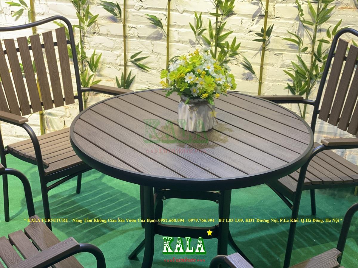 - Chất liệu: Khung bằng nhôm, phần mặt làm bằng nhựa polywood giả gỗ.