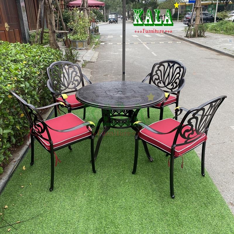 Bộ bàn ghế nhôm đúc NK31 có bàn tròn nhôm đúc tròn 100cm thường được kết hợp với 4 hoặc 6 ghế. Toàn bộ bàn ghế bằng nhôm đúc sơn tĩnh điện vừa bền vừa đẹp, sang trọng, cổ điển.