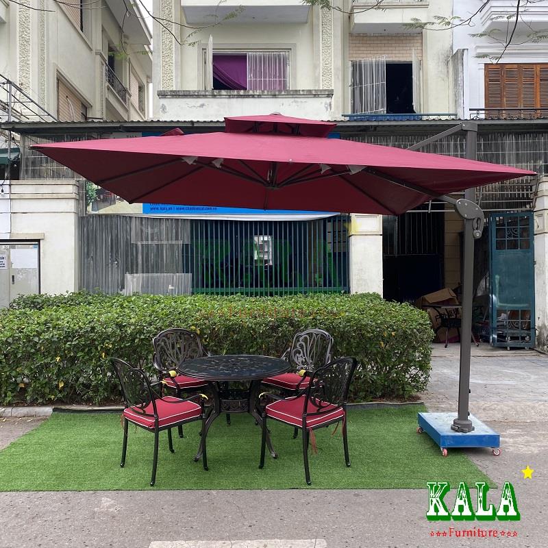 Người dùng có thể dùng kèm ô lệch tâm vuông, ô lệch tâm tròn,.... các mẫu ô khác để che nắng mưa cho bàn ghế.