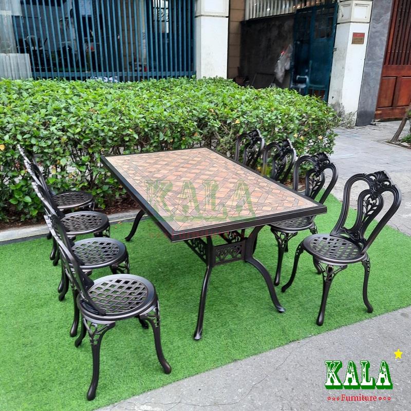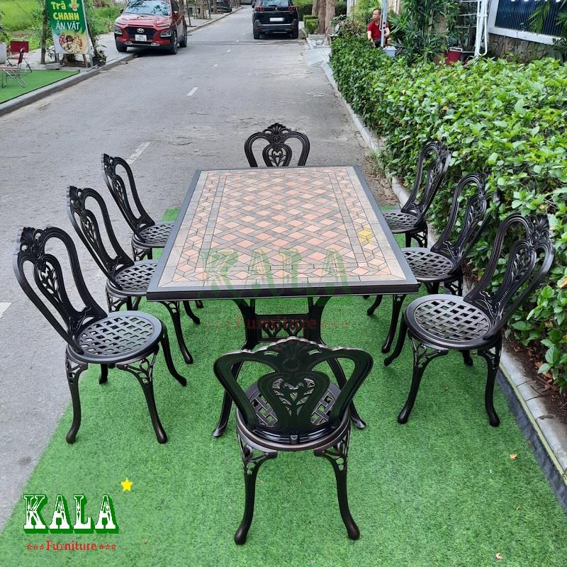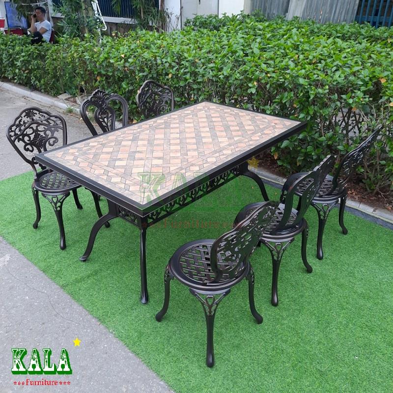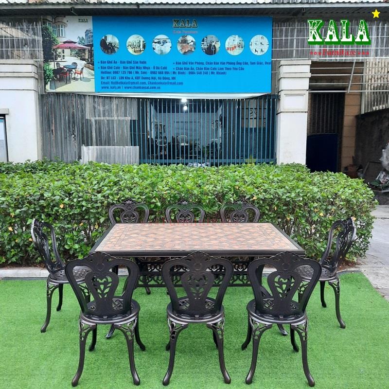 Bộ bàn ghế nhôm đúc NK35 có khung nhôm đúc sơn tĩnh điện, mặt bàn đá dài 154cm có thể ghép 6-10 ghế. Với chất liệu nhôm đúc người dùng không phải lo lắng về độ bền và độ thẩm mỹ của bàn ghế bởi bộ bàn ghế nhôm đúc được nhập khẩu nên mẫu mã rất tinh xảo, đẹp mắt.