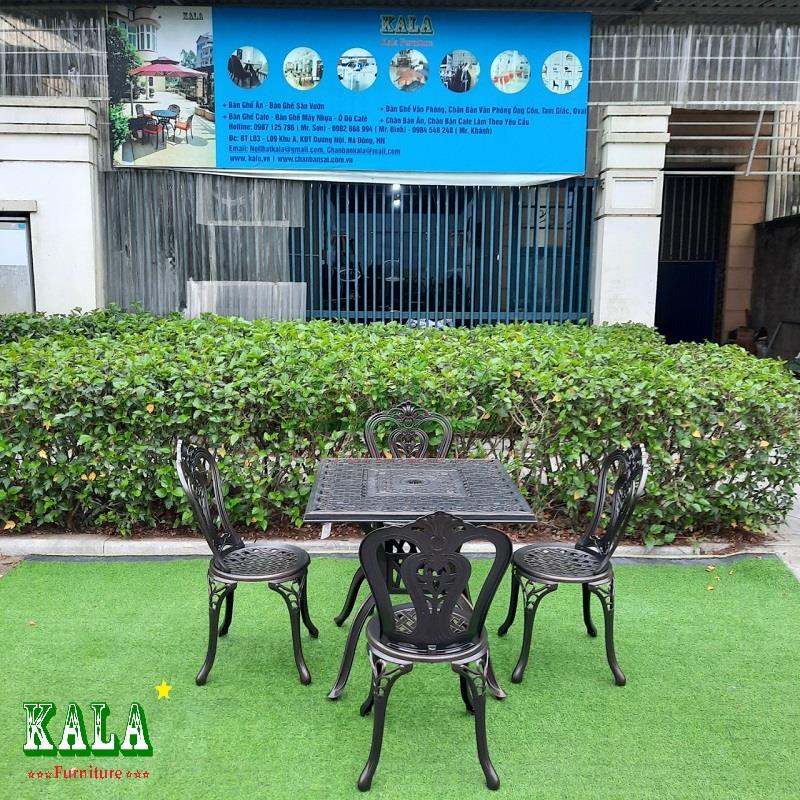 Bộ bàn ghế cafe khung nhôm dùng cho ngoài trời vừa bền không lo gãy hỏng do rỉ sét, nắng mưa, vừa đẹp mắt bởi các chi tiết, họa tiết hoa văn tinh xảo, đẹp mắt. Bộ bàn vuông 80cm kết hợp với 4 ghế phù hợp cho nhiều không gian.