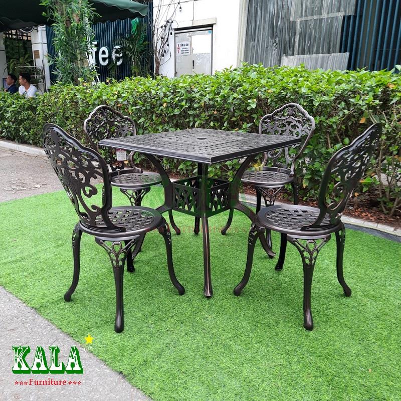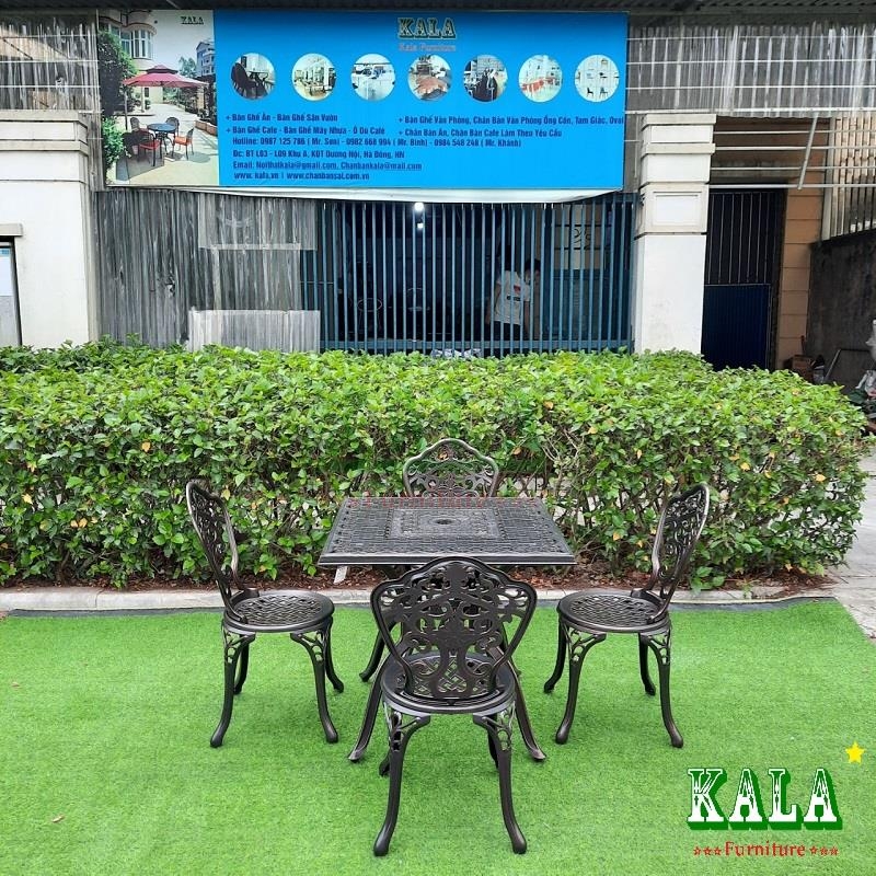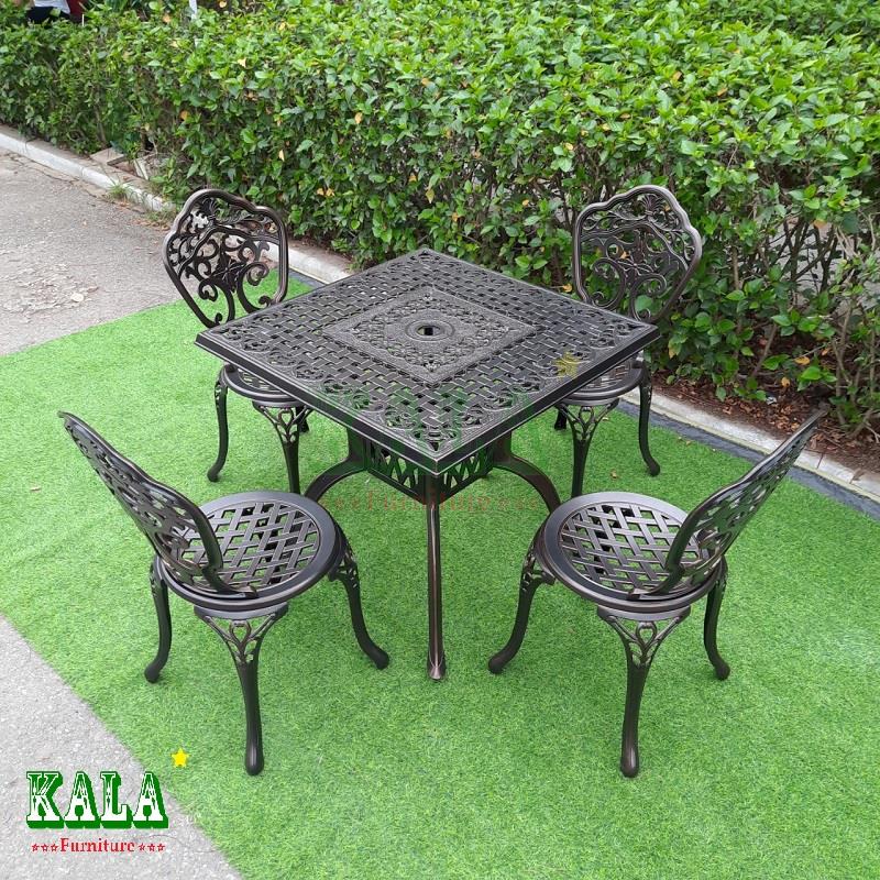 Bàn ghế nhôm đúc là bàn ghế dùng ngoài trời vừa bền vừa đẹp được nhiều người lựa chọn cho sân vườn. Họa tiết hoa văn đơn giản, tinh tế, đẹp mắt.