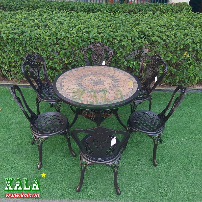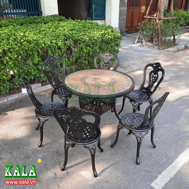 Bộ gồm 1 bàn 6 ghế dùng làm bàn ghế cho sân vườn, dùng làm ghế ngoài trời với không gian lớn. Mặt bàn đá được bo viền khung nhôm nên không chỉ tăng vẻ đẹp hiện đại cho mẫu bàn ghế nhôm mà vẫn bền đẹp.