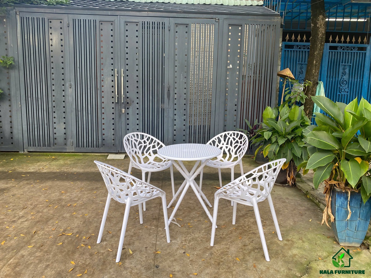 Bộ bàn ghế nhựa đúc PP02 là mẫu bàn ghế cafe cho quán hay cho không gian ban công, sân vườn đều rất phù hợp bởi những yếu tố sau: