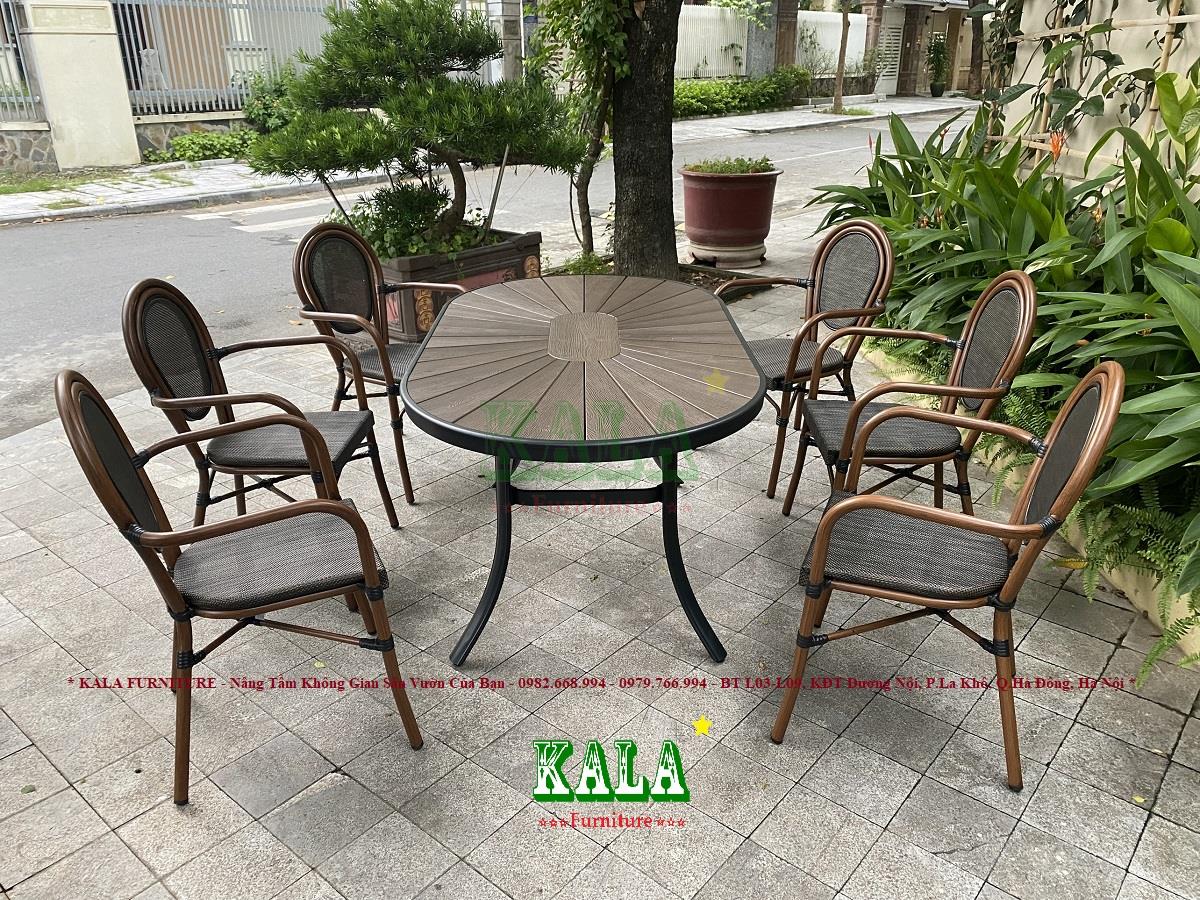 - Chất liệu: Khung nhôm, mặt bàn nhựa giả gỗ.