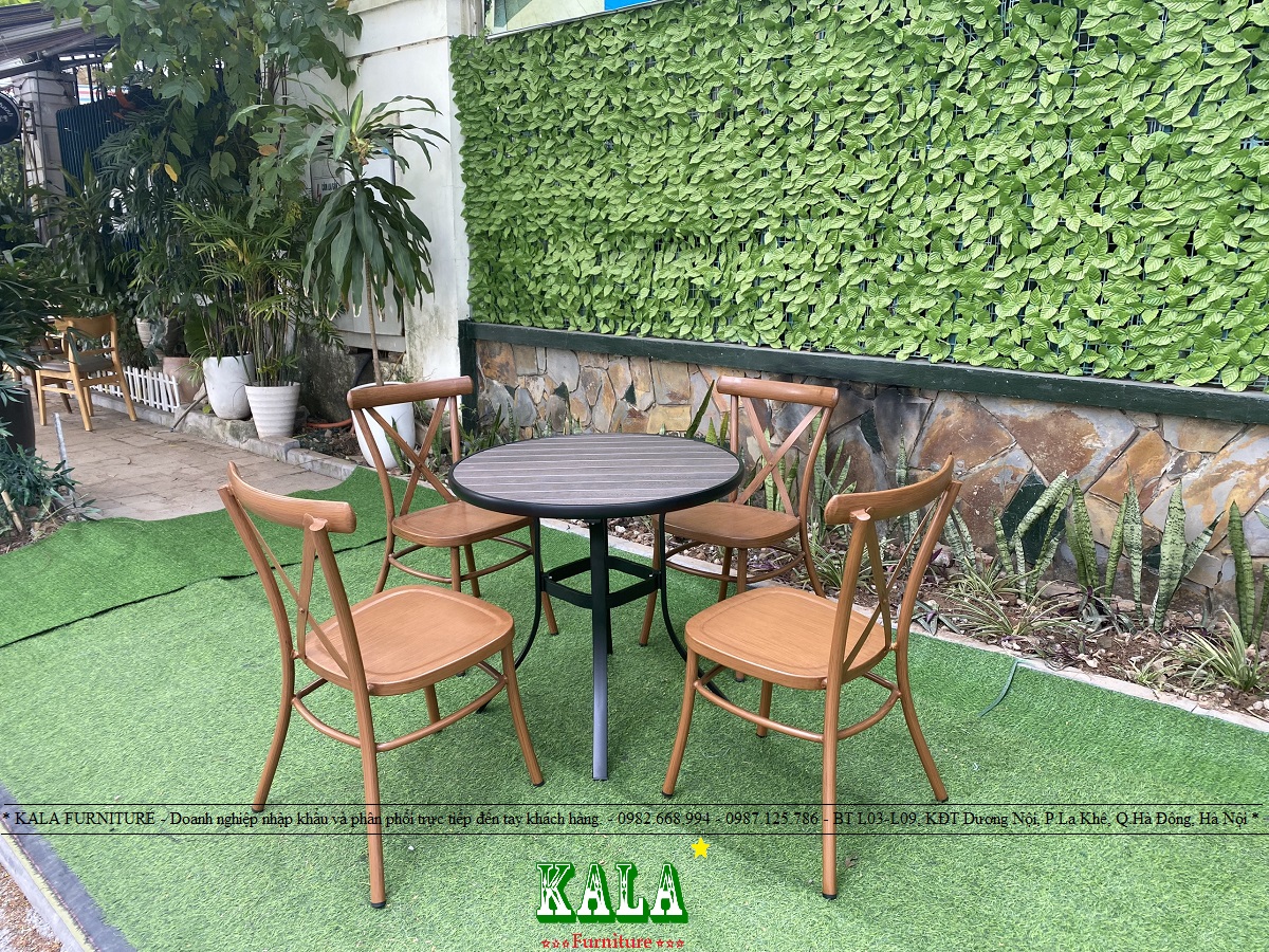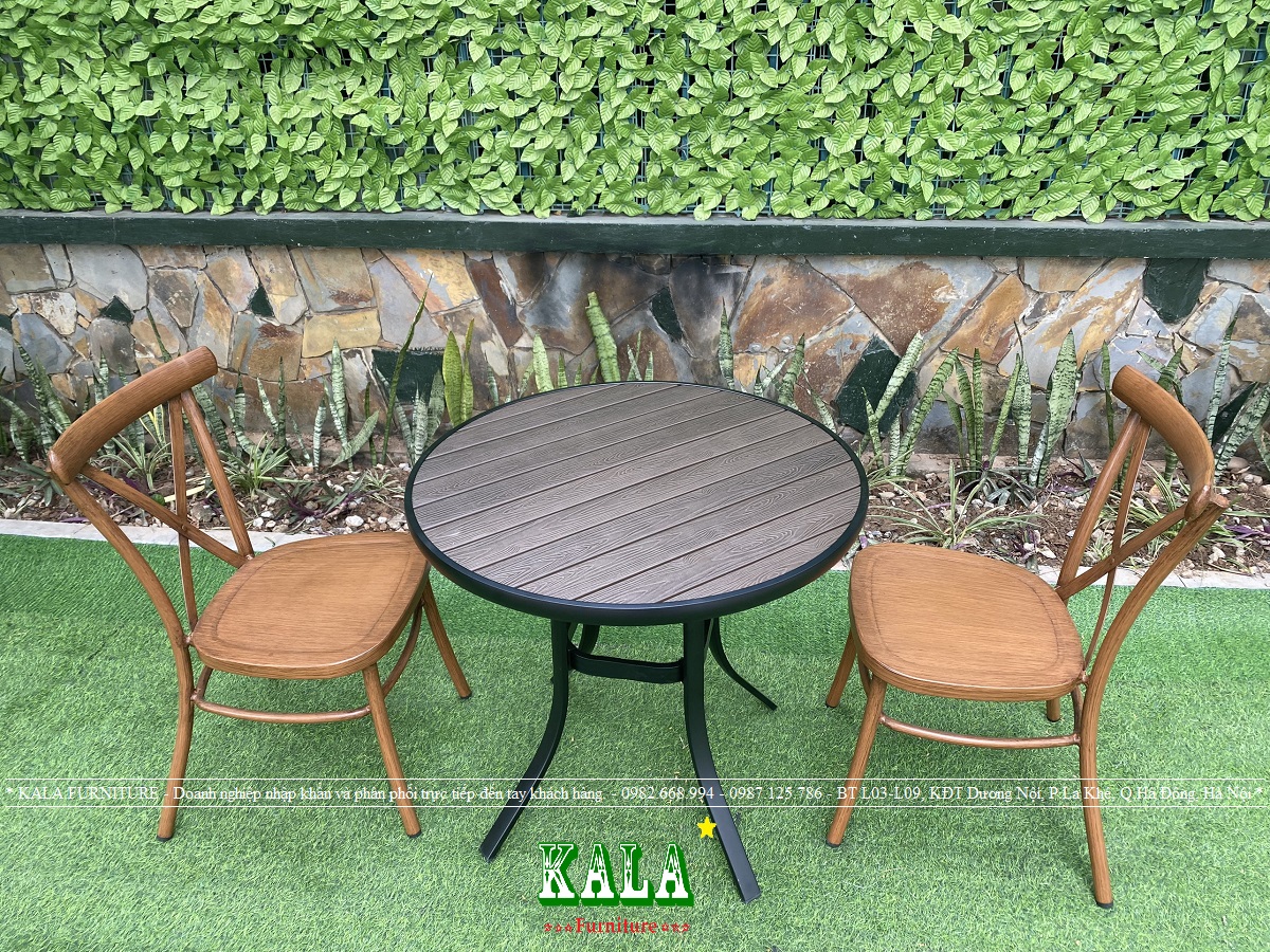 Mọi người thích bàn ghế gỗ nhưng sợ dùng ngoài trời nhanh bị mối mọt, gãy hòng thì đừng bỏ qua bộ bàn ghế sân vườn BSV-N1 của KALA Furniture này nhé. Không phải làm bằng gỗ nhưng toàn bộ bàn ghế có vân gỗ vô cùng tinh tế, không khác gì mẫu bàn ghế gỗ thông thường.