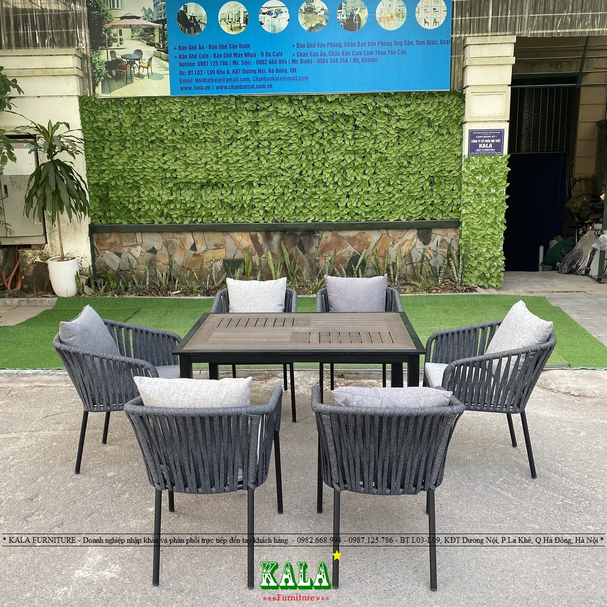 - Chất liệu: Khung bằng nhôm, phần mặt làm bằng nhựa polywood giả gỗ.