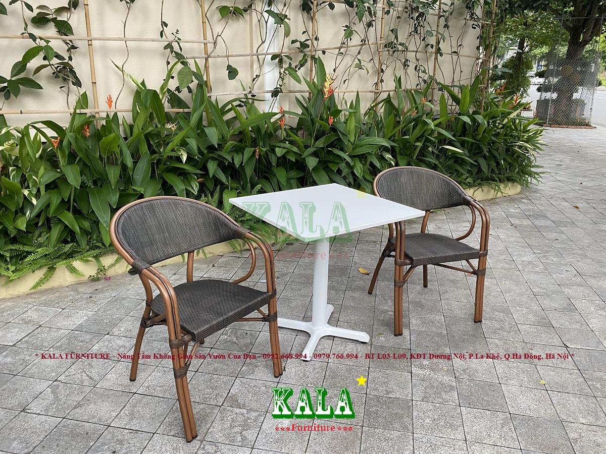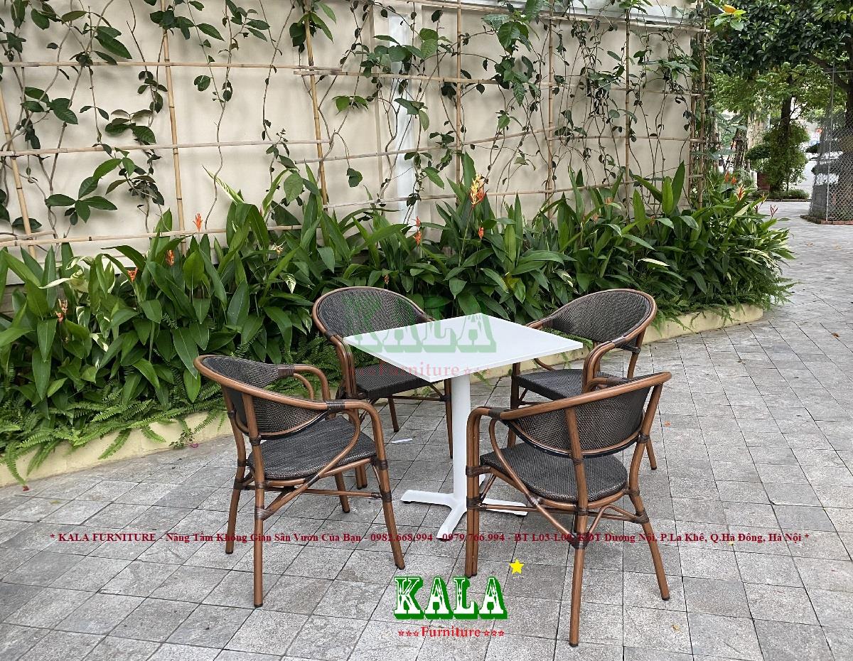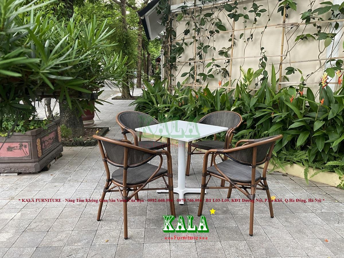 Hiện nay, nhiều quán cafe, nhiều gia đình hơn lựa chọn các mẫu bàn ghế cafe nhập khẩu cho không gian bên ngoài hơn. Bởi chúng thướng có thiết kế mới lạ, độc đáo, bắt mắt người dùng ngay từ cái nhìn đầu tiên. Bạn hãy tham khảo Bộ bàn ghế sân vườn NK49 điển hình này tại Nội thất KALA đang được mọi người rất ưa chuộng.
