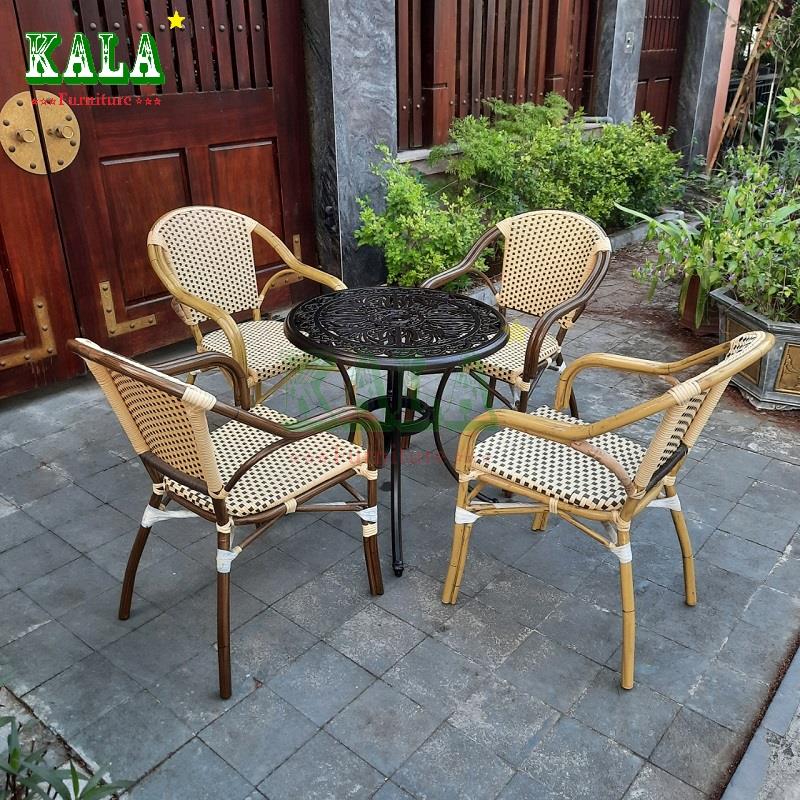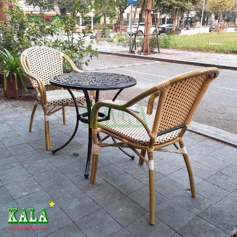 Thấy được vấn đề đó, Nội thất Kala muốn giới thiệu đến người dùng bộ bàn ghế sân vườn NK9. Bộ bàn ghế được kết hợp từ ghế khung nhôm bọc sợi mây PE và bàn nhôm đúc tròn 70cm. Toàn bộ bàn ghế đều được nhập khẩu 100% nên kiểu dáng vô cùng đẹp mắt.