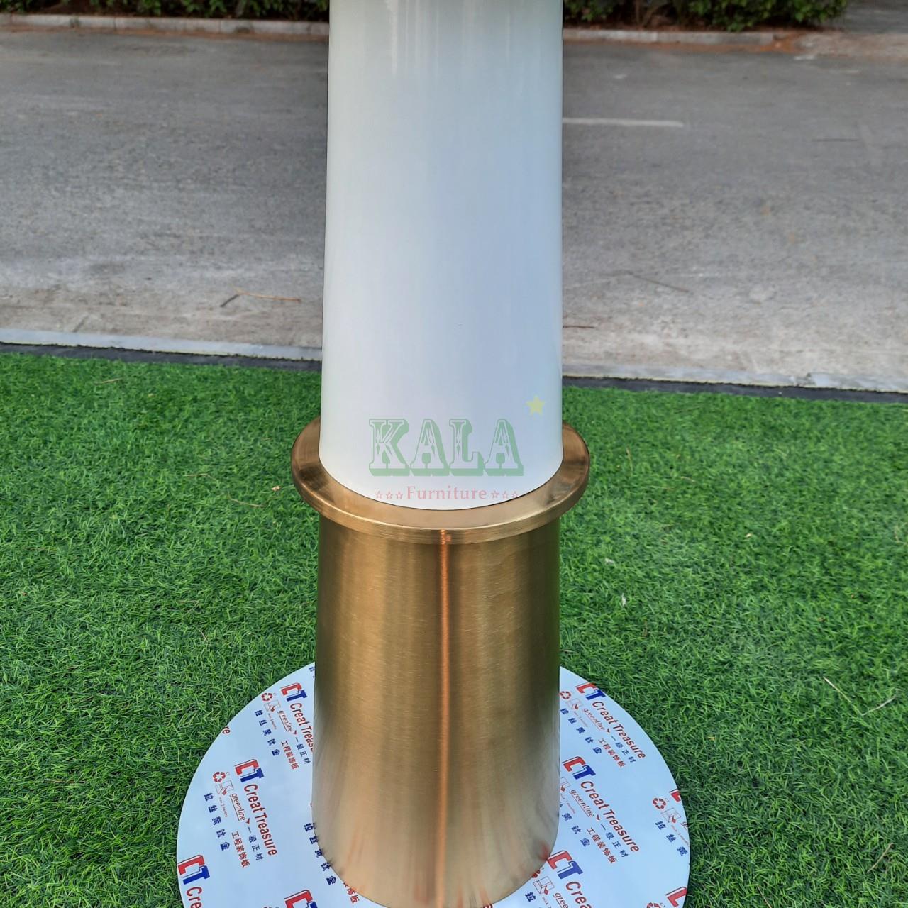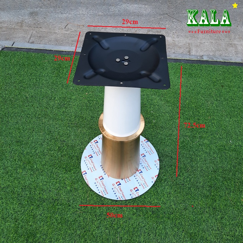 Chân bàn được kết hợp từ sắt sơn tĩnh điện trắng và inox mạ vàng nên chân bàn khá sáng, nổi bật dù để mặt bàn đá nhập khẩu trong nước hay mặt bàn đá nhập khẩu. Chân bàn to, chắc chắn, phù hợp vời mặt bàn kích thước 60cm, 70cm, 80cm hay 90cm đều thoải mái chịu được.