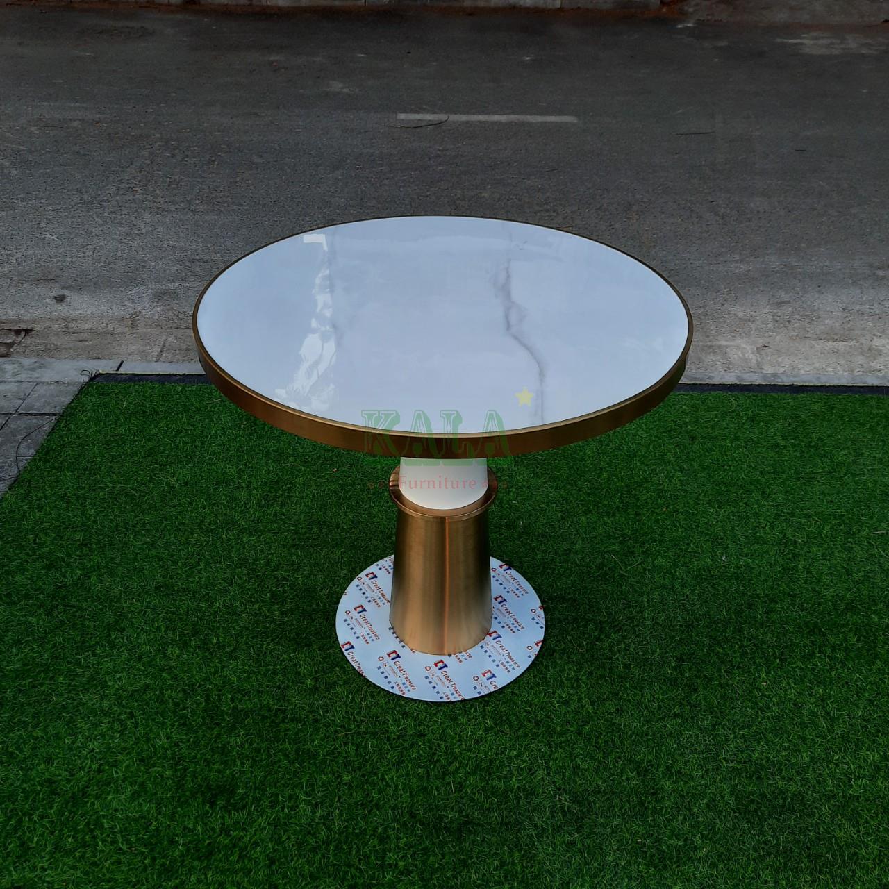 Chân bàn nhập khẩu cao cấp có phần dưới làm bằng inox mạ vàng, phía trên bằng thép sơn tĩnh điện. Chân bàn nổi bật, sang trọng, phù hợp làm chân bàn cafe cho các quán cafe kiểu mới, hiện đại hoặc làm bàn trà tiếp khách tại nhà hàng, khách sạn, showroom,... Hoặc làm bàn uống nước tại nhà.