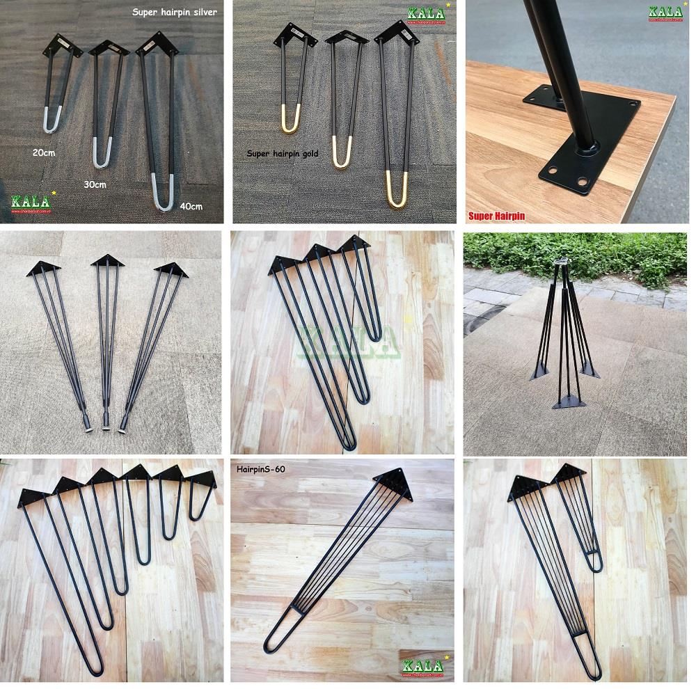 Chân bàn hairpin có thiết kê vô cùng đơn giản và cứng cáp. Hơn thế nữa, chân bàn còn vô cùng tiện lợi cho các quán trà chanh, các quán cafe,... Người dùng dễ dàng lắp ghép chân với mặt bàn và thoải mái sáng tạo cho không gian của mình trở nên sinh động. Chân bàn có nhiều kích thước: 20cm, 30cm, 40cm,50cm, 60cm. 72cm để người dùng lựa chọn cho mẫu bàn của mình.