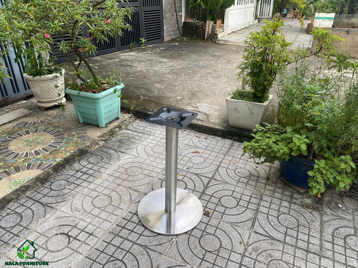 Chân bàn trụ inox dẹt CI-T45 với tấm gang đúc bên trong làm tăng độ vững chắc cho chiếc bàn, phần bên trên là mặt bích hình vuông có sẵn lỗ để khoan bắt vít vào mặt bàn. Bàn ghế Cafe
