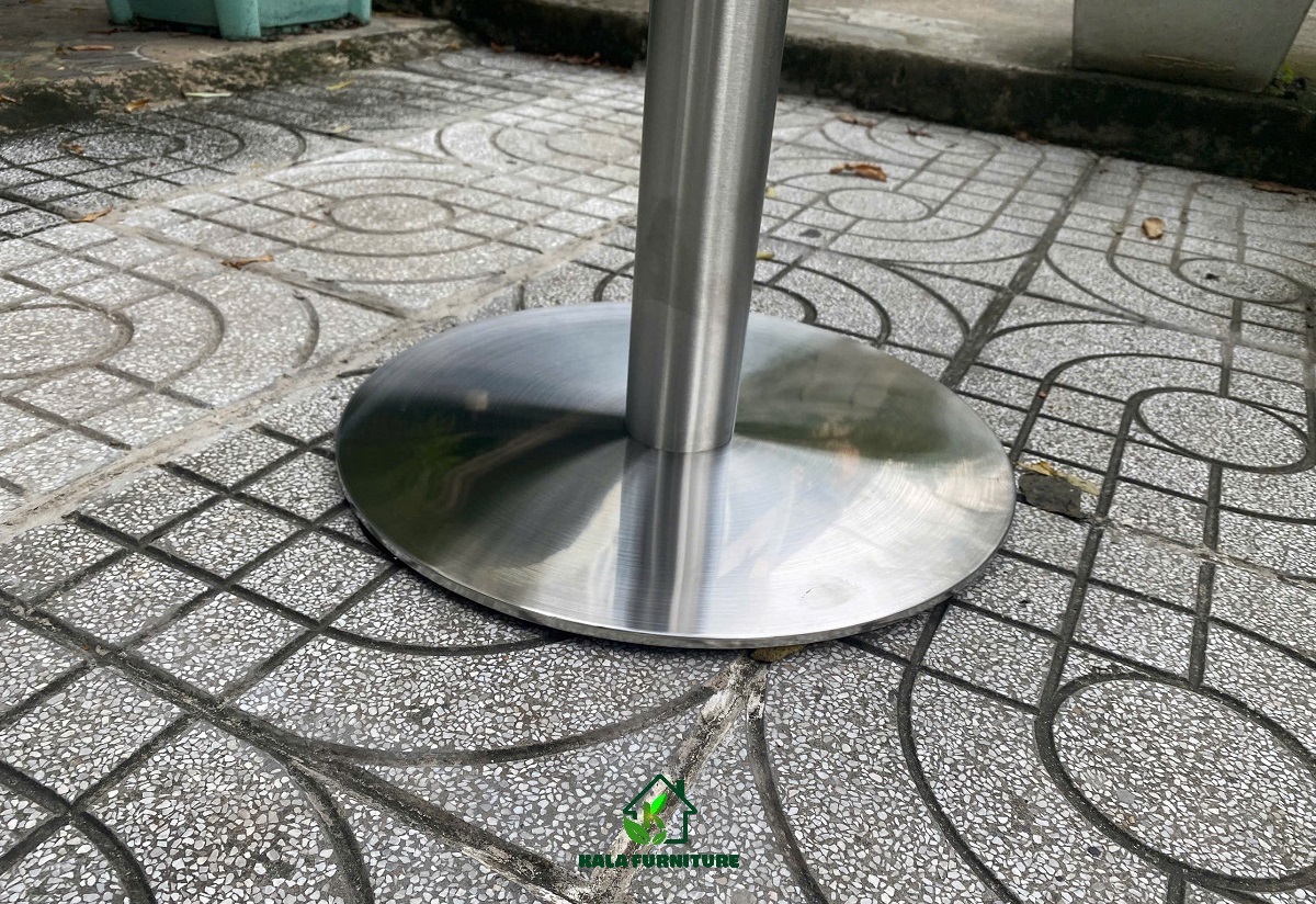 Ảnh 1: Chân bàn inox dẹt T45cm có độ dày 5mm rất chắc chắn, bền đẹp với thời gian. Bàn ghế dùng cho quán cafe, văn phòng mang phong cách hiện đại