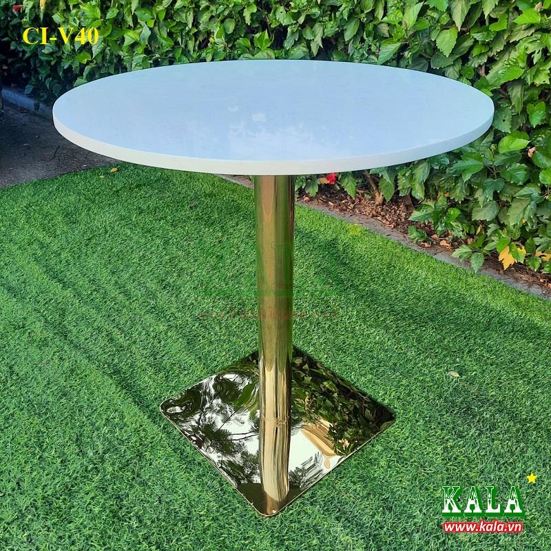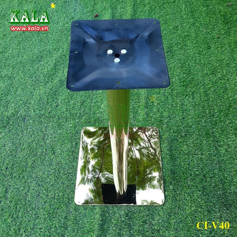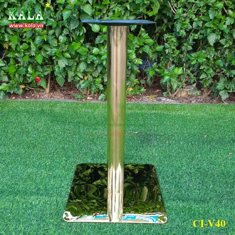 Chân bàn CI-V40 là mẫu chân bàn inox mạ vàng thường xuyên được làm bàn cafe, bàn uống nước, bàn tiếp khách tại các showroom,....Được bao phủ màu vàng bóng như trang sức càng làm cho chân bàn thêm nổi bật, sang trọng cho không gian mà nó được đặt vào.