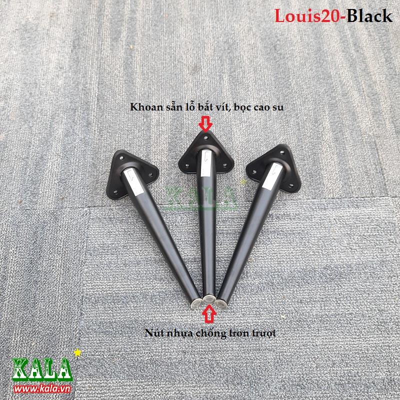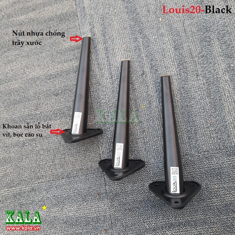 Chân bàn Louis20-Black là mẫu chân bàn được sơn tĩnh điện màu đen với chiều cao 20cm thường dùng làm chân tủ, chân ghế sofa, chân bàn sofa rất phù hợp, phần mặt bên trên được khoan sẵn lỗ bắt vít có viền xung quanh bọc cao su tạo độ êm khi ghép với mặt bàn, bên dưới chân có nút nhựa chống trầy xước mặt sàn rất tốt.