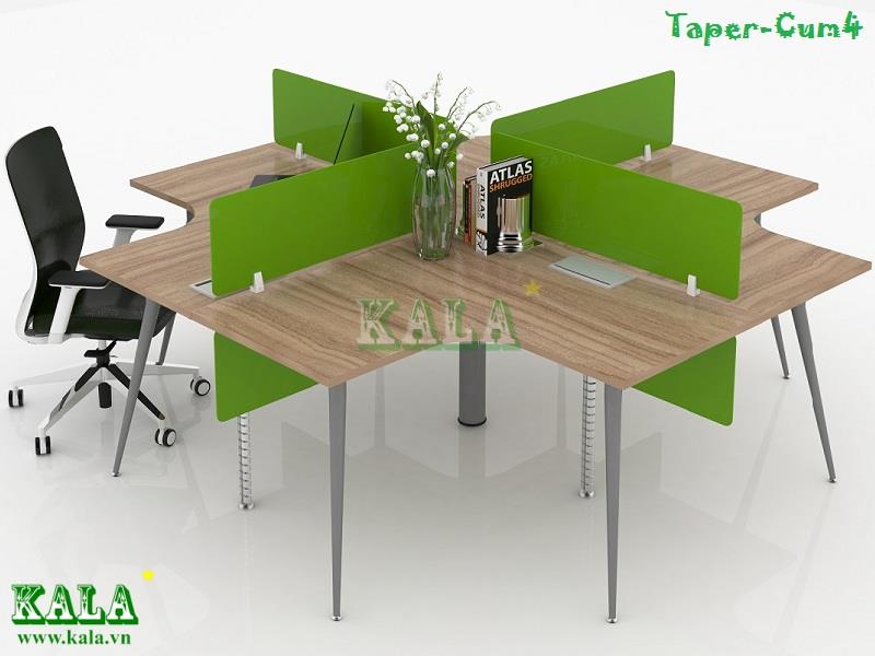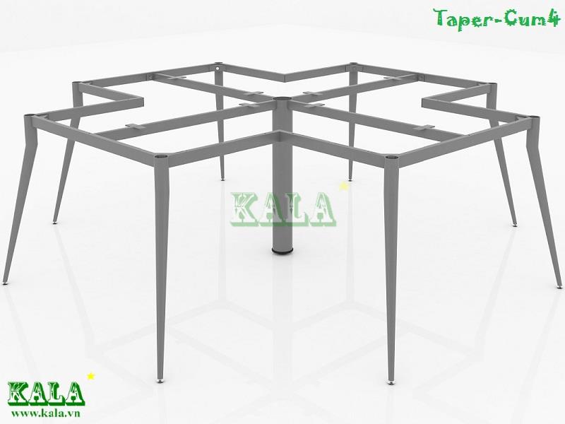 Như những mẫu trước đây mọi người đa số đầu dùng khung chân bàn là sắt hộp hay những chân trụ nên cảm giác không được thẩm mĩ cùng với đó là thường có những mối hàn chưa thực sự tinh tế cho lắm thì nay với những sự phát triển của xã hội và không gian văn phòng hiện đại quý khách đã trau chuốt và tim tòi rất nhiều những mẫu mới và đặc biệt là những mẫu chân bàn ống côn, tam giác hay hình Oval là những xu thế hiện nay. Sau đây nội thất KALA xin giới thiệu tới quý khách hàng mẫu chân bàn văn phòng ống côn 1 tầng cụm 4 hay còn gọi là chân bàn ống côn Taper - Cum4 chuyên dùng làm bàn họp công ty hay bàn nhân viên.