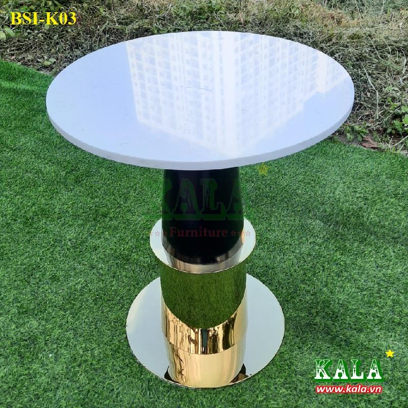Chân bàn CSI-K03 kết hợp với mặt bàn đá trắng vân mây.