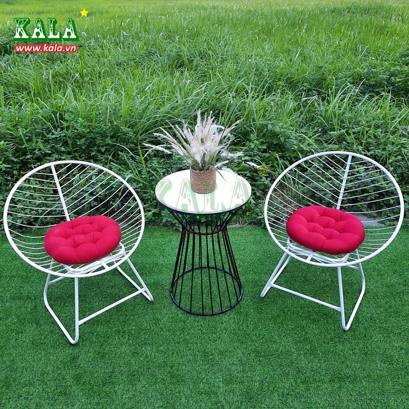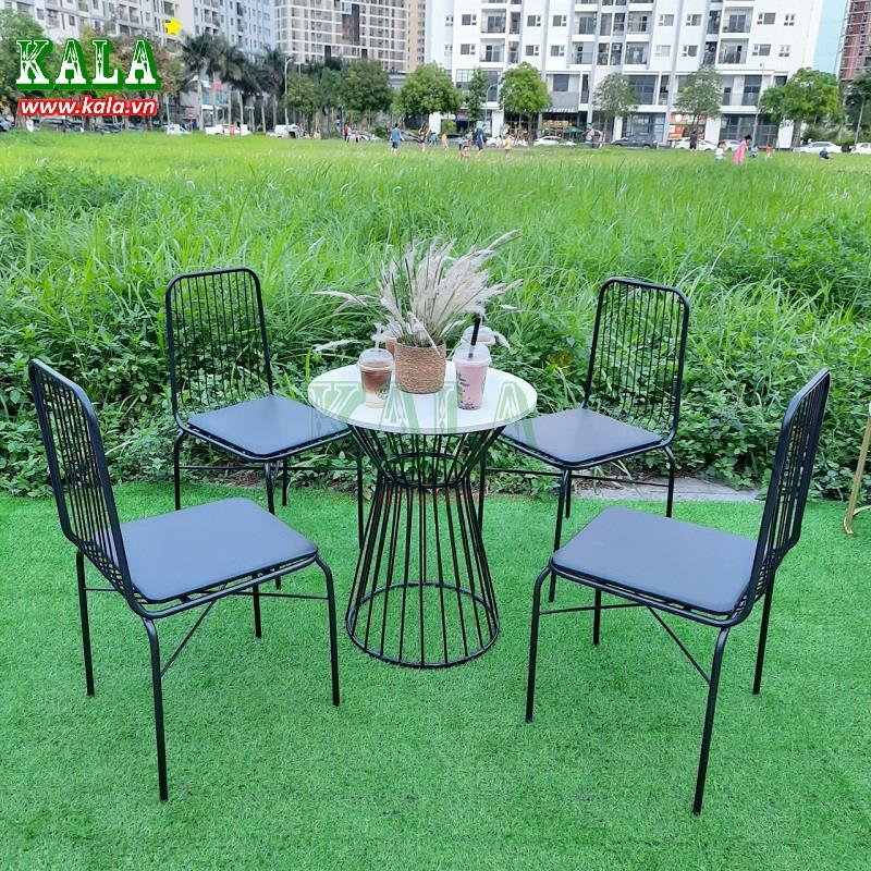 Ảnh 5: Khi chân sắt CS-LT45 được ghép với ghế sắt nón sẽ làm cho không gian của quý khách tuyệt với hơn, với toàn bộ được làm bằng sắt sơn tĩnh điện nên có thể chịu nắng mưa rất tốt.