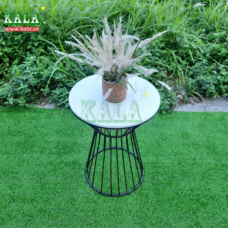 Ảnh 3: Khi chân bàn sắt được ghép với mặt bàn đá màu trắng tuyệt đẹp có thể dùng làm bàn trưng bày, bần nơi ban công, bàn sân vườn hay bàn trong quán cafe.