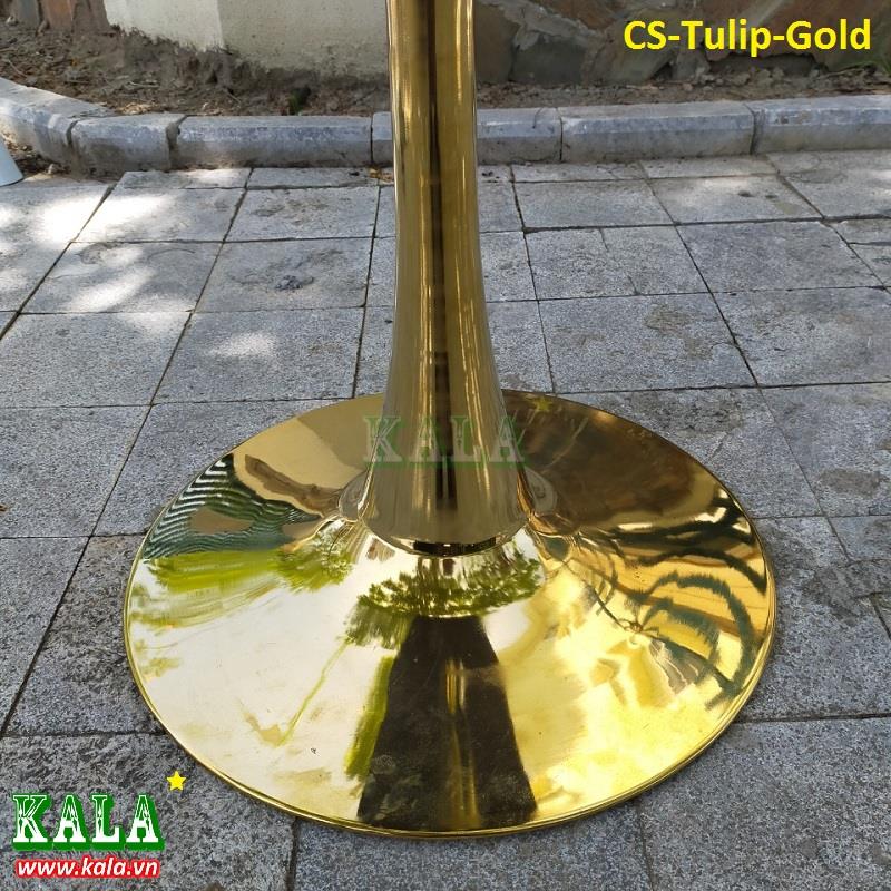 Chân bàn Tulip mạ vàng Tulip-Gold được làm bằng sắt mạ vàng tuyệt đẹp với kiểu dáng tinh tế, sang trọng với những đường nét thanh thoát có sự đồng bộ từ mâm chân bên dưới đến thân ống đều mang nét rất uyển chuyển.