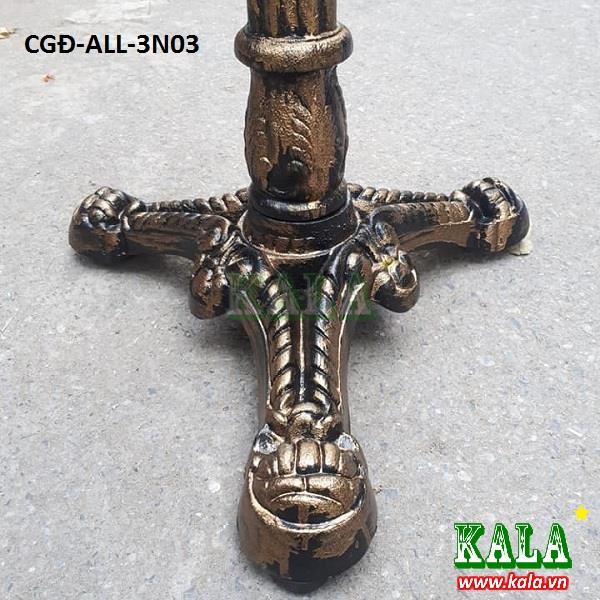 Chân bàn Gang 3 nhánh được đúc hoàn toàn bằng gang rất chắc chắn với những họa tiết sơn màu giả cổ tuyệt đẹp, chân gang luôn có ưu điểm là không hoen rỉ và là sản phẩm tốt nhất khi dùng không gian ngoài trời.