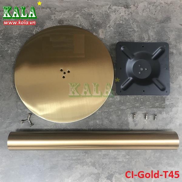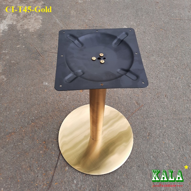 Chân bàn INOX mạ vàng mâm tròn 45cm được nhập khẩu nguyên chiếc 100% nên có sự đồng bộ cao. mang phong cách hiện đại thường dùng làm bàn cho văn phòng, quán cafe đẹp, khách sạn hay showrom..