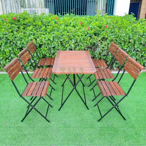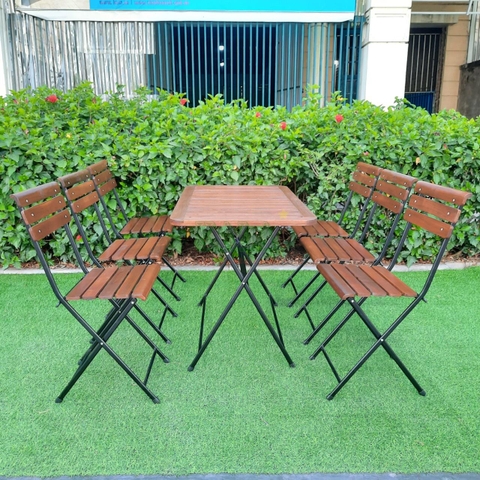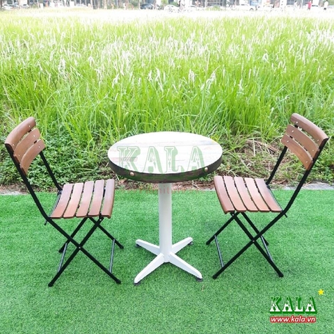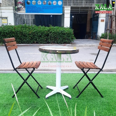 Bàn ghế cafe chân sắt mặt gỗ độc đáo
