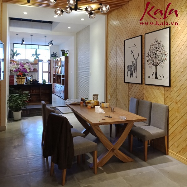 Cùng với đó là những chiếc ghế Eames nệm thổ cẩm với những phần chân được làm bằng gỗ sắt đan rất tinh tế tạo cảm giác thông thoáng và rất chắc chắn bền đẹp với thời gian.