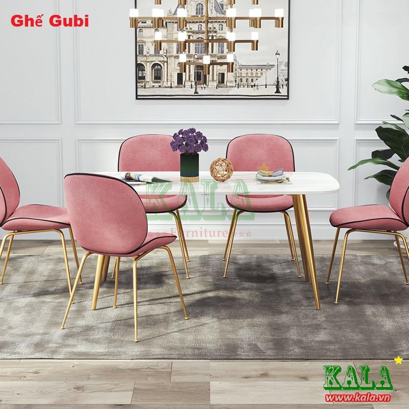 Dòng ghế Gubi là dòng ghế ăn, ghế cafe nhập khẩu cao cấp đang được ưa chuộng nhất hiện nay. Ghế được bọc vải nỉ nhung tạo cảm giác mềm mại, đệm ghế được làm dày dặn nên khi ngồi rất thích, Chân ghế mạ vàng PVC vô cùng sang trọng và tinh tế, làm điểm nhấn nổi bật cho ghế.