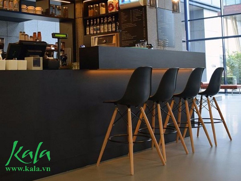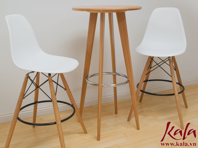 Ghế Eames Bar cao gỗ cao có thiết kế độc đáo, chắc chắn nên rất yên tâm khi ngồi thư giãn, chân được kết cấu với nhiều liên kết bởi sắt giằng chung quanh tạo thế đứng chắc chắn. Bàn ghế Cafe