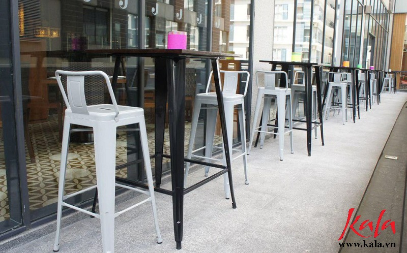 Dù kết hợp với mọi không gian thì ghế Tolix luôn làm nổi bật với sự chắc chắn, đường nét tinh tế thanh thoat nhất là với quầy bar, hành lang, lối, sảng ban công giúp bạn ngắm không gian xung quyanh rất thoải mái không bị khuất tầm nhìn. Bàn ghế IKEA cafe