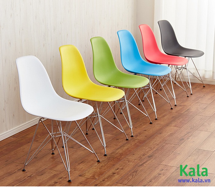 Ghế Eames DSW chân sắt được dùng cho ghế bàn ăn, ghế cafe, ghế học sinh hoặc ghế làm việc cho nhân viên văn phòng. Mẫu ghế này chúng ta cũng dễ dàng bắt gặp ở bất cứ đâu. Với giá cả phải chăng, mẫu mã phù hợp xu hướng nội thất mới, nội thất hiện đại, nội thất cafe, nội thất nhà hàng...