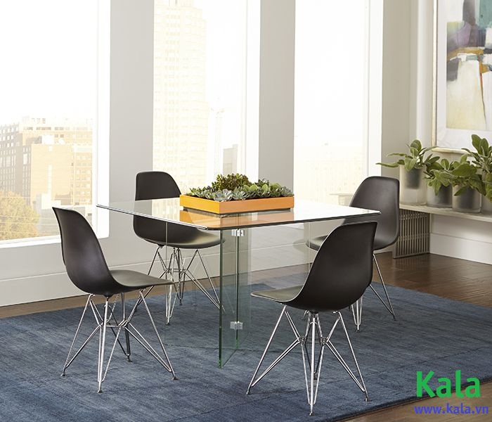 Bàn ghế Eames là một trong những mẫu ghế hiện đại được ưa chuộng nhất hiện nay. Dù chỉ là một hay vài chiếc phối kết giữa các phiên bản trong một tổng thể thì ghế Eames luôn luôn nổi bật trong bất kì không gian nội thất nào. Chân bàn cafe, văn phòng được làm bằng inox